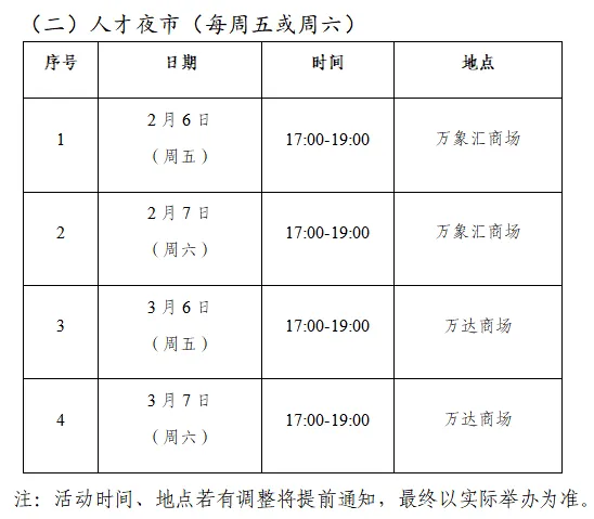 形式:打造“人才夜市”特色品牌活动,创新将夜生活休闲场景与人企精准交流场景深度融合,为广大求职者与本地用人单位搭建轻松多元、高效便捷的岗位供需对接互动平台,让招聘更有温度、对接更具实效。
