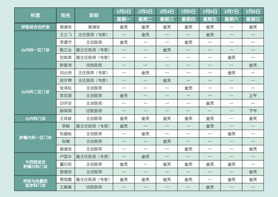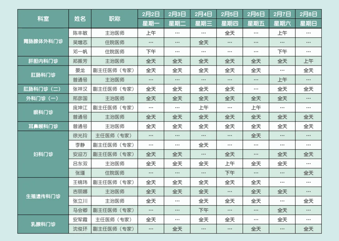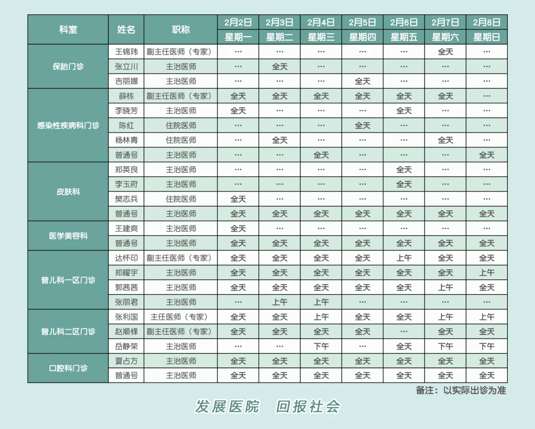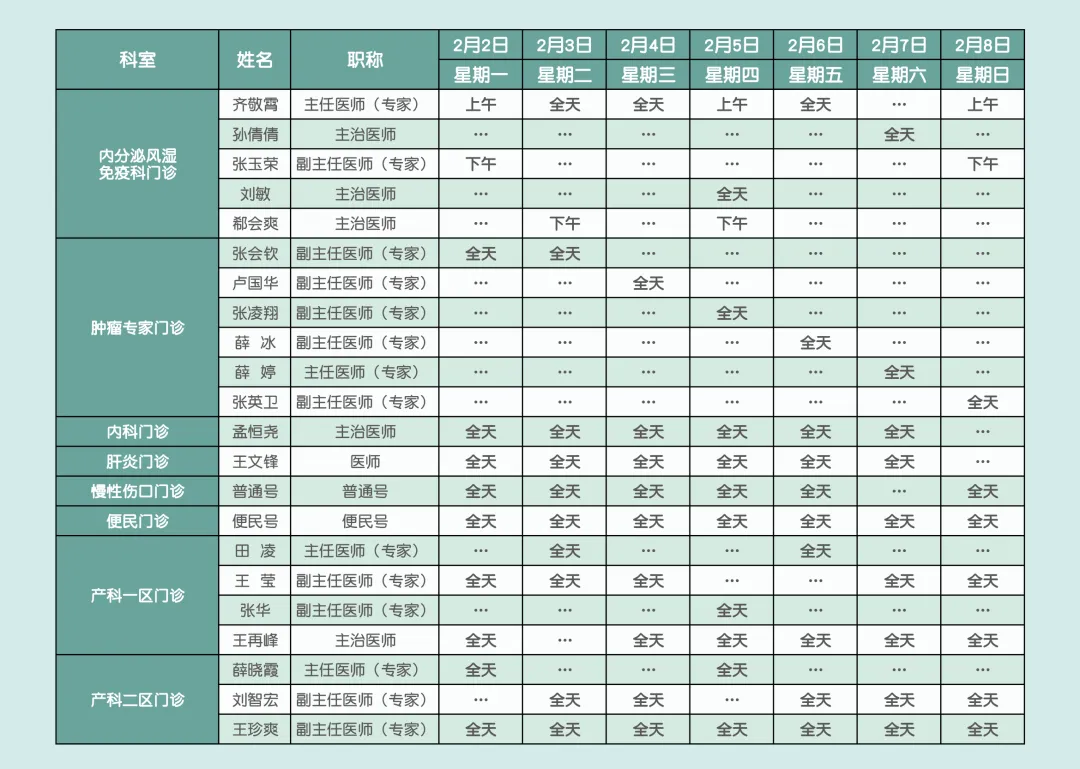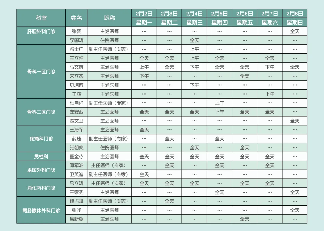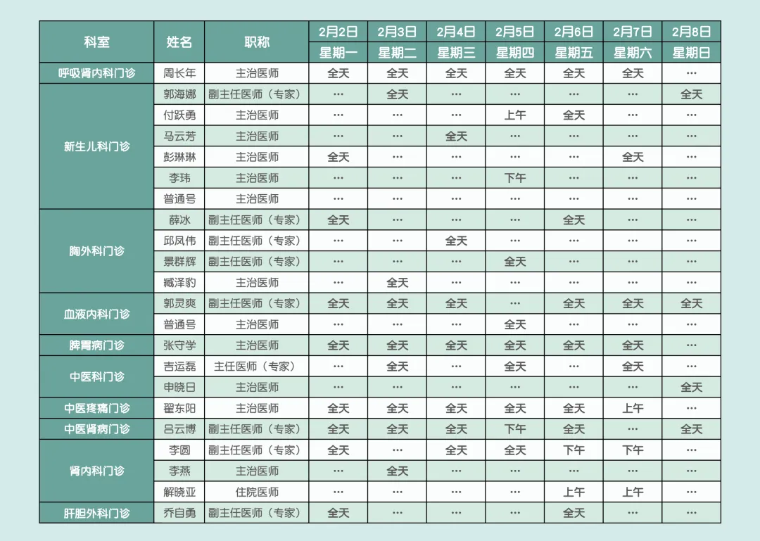 邢台市南和区人民医院2月2日—2月8日门诊医师出诊安排