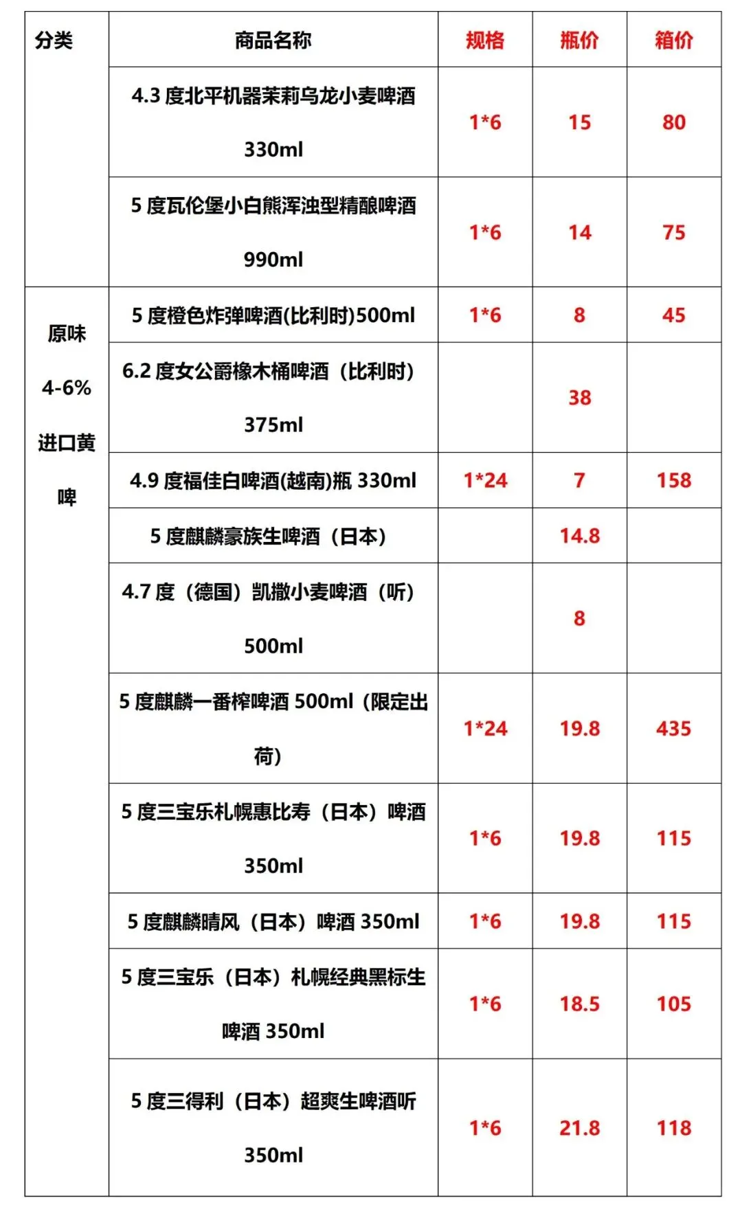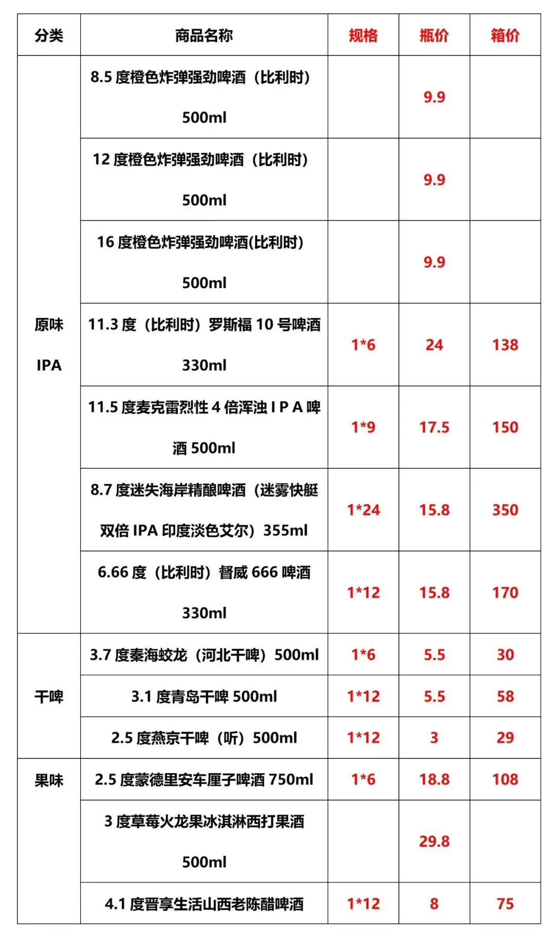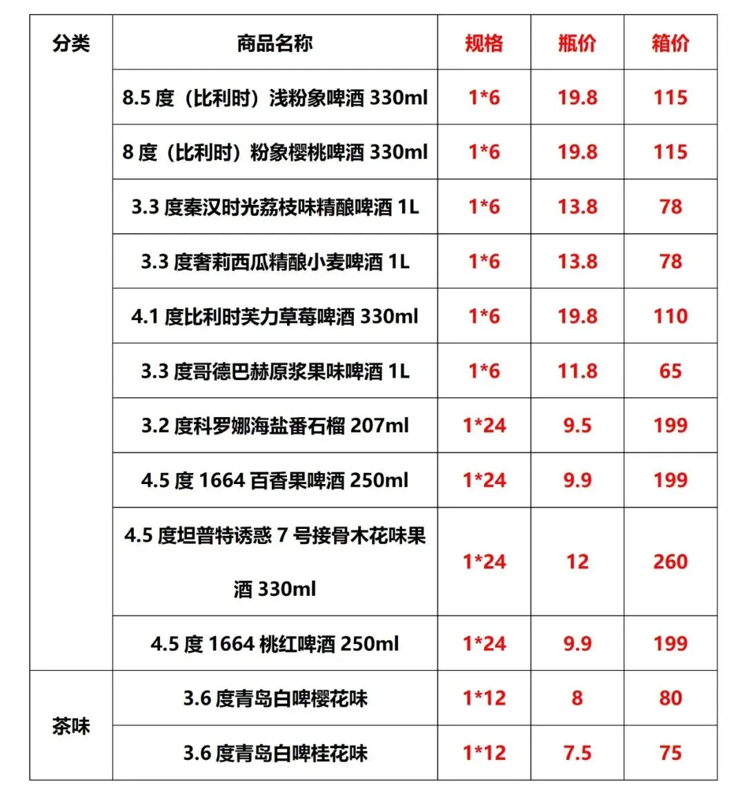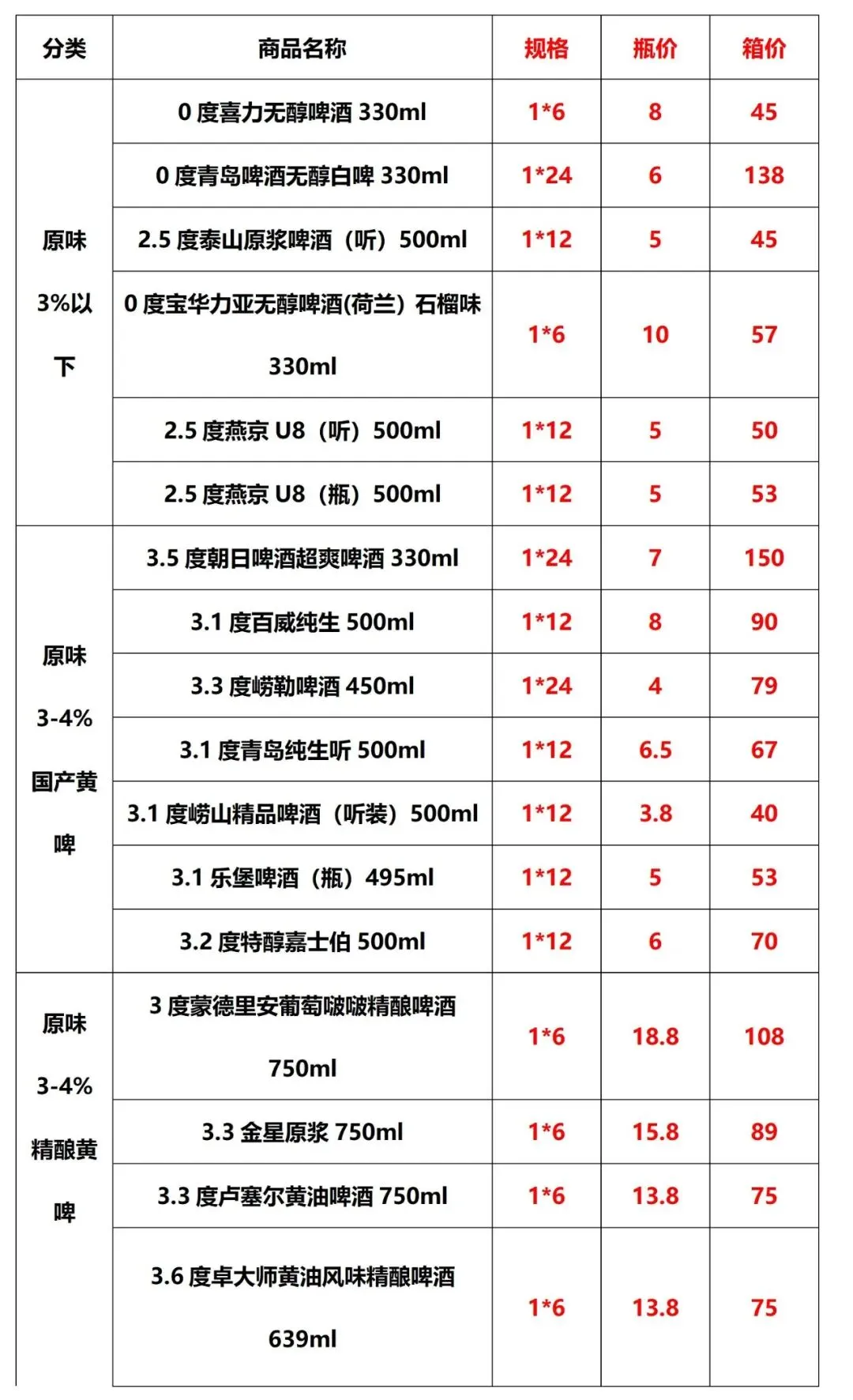 >2026年春节(邯郸市区)部分啤酒市场参考价