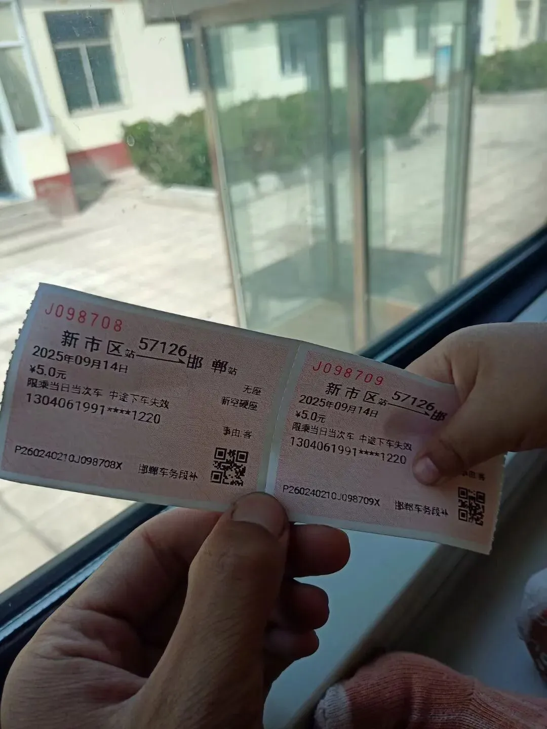 关于绿皮火车,后来的记忆都是从抖音、快手和微信等网络平台看到的,2017年参加工作以后,有了自己的智能手机,经常能刷到一些驴友成群结队从和村站下火车,步行到我们村东的鼓山小鬼道攀岩爬山,然后再穿越鼓山到大社,坐邯郸301公交返回邯郸。在村里经常能看到驴友的身影,知道他们都是从邯郸站坐绿皮火车到和村站下车过来爬山。2025年,网络平台上发布,绿皮火车涨价了,从两块钱一位涨到了五块钱一位,理由是车厢环境升级。上班后再也没有坐过绿皮火车了。直到2025年9月14日,尘封多年的绿皮火车梦再次开启。