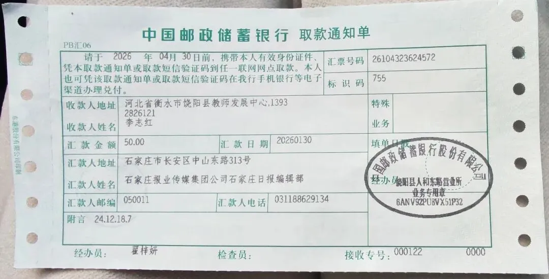 2025年文章,2026年收到稿费(石家庄日报)
