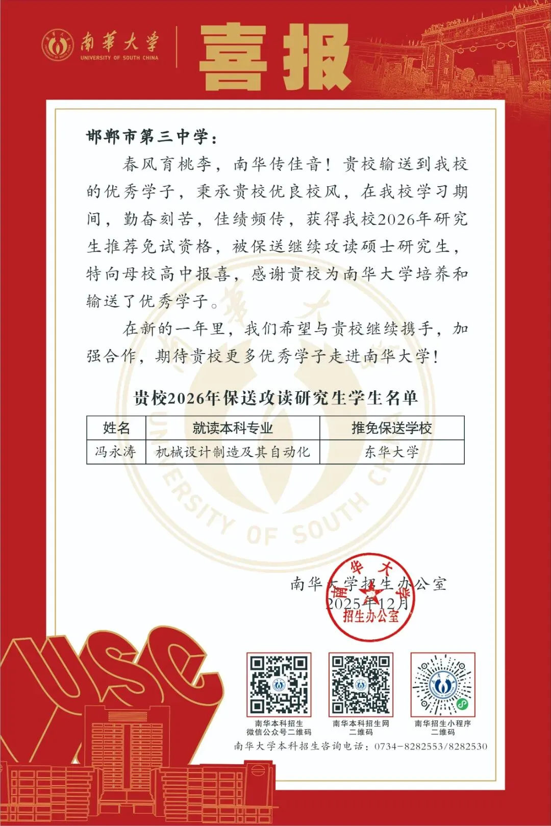 南华大学本科招生微信公众号(meetusc)