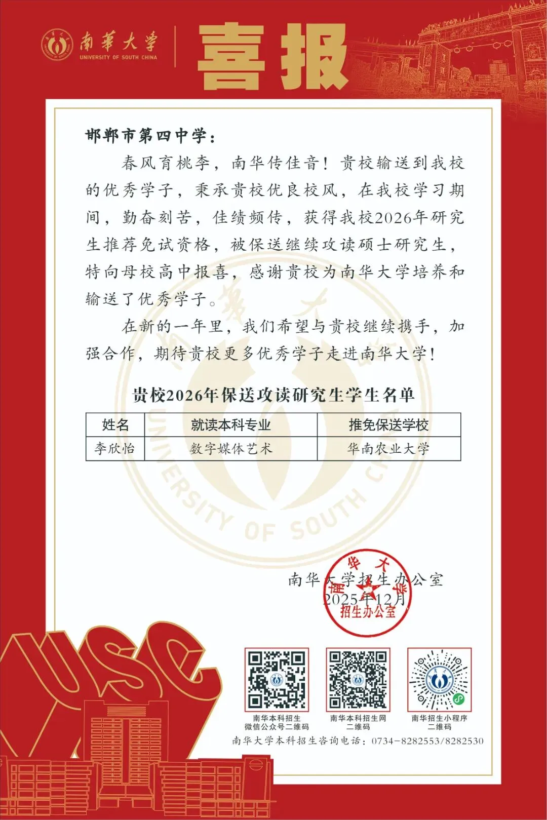 南华大学本科招生微信公众号(meetusc)