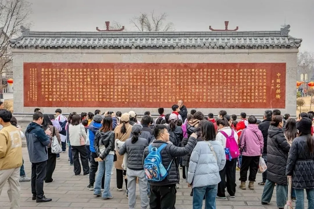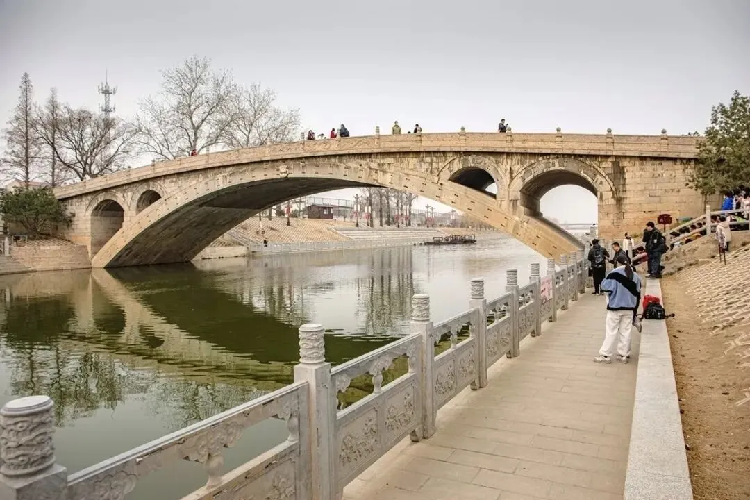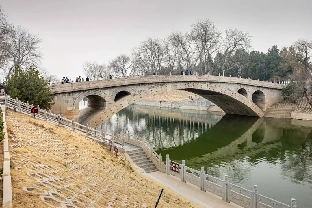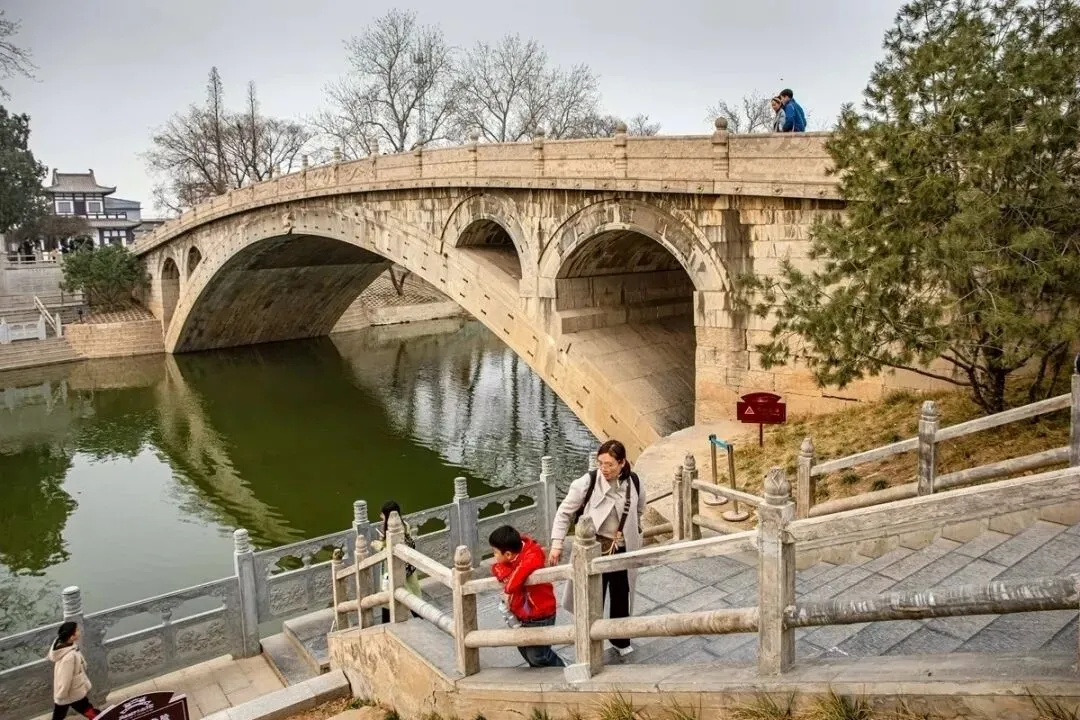 到达石家庄的第二天,上午去了东南方向约50公里的赵州桥。在赵县下车后还要徒步约2公里左右到景区,途中有很多跟桥梁有关的景观。下图中几位是中国近代史上的造桥专家,中间坐着的那位是梁思成,最左边的那位是茅以升。下面几位是宋元时期与桥梁有关的名人,居然朱熹和苏轼也榜上有名。下图中的几位是隋唐时期的人物,最左边的那位是唐僧玄奘。赵州桥景区全员免票,有一些租用唐装汉服之类的地方。赵州桥始建于隋开皇十四年(公元595年)建成于隋大业二年(公元605年)。赵州桥也叫安济桥,是后来北宋哲宗皇帝赵煦赐名的。下图是2005年赵州桥1400年华诞时立的纪念碑。(备注:网查的资料与景点提供的说明稍有误差,现以景区说明为准)。看到赵州桥的实体了。远看,疑似一座水泥浇筑,浑然一体的钢筋混凝土桥梁。小时候就知道,中国有四大著名古桥,那时印象最深的是卢沟桥。这次去了才知道,赵州桥不但是中国古桥的老大,还是世界上现存年代最久远、跨度最大、保存最完整的单孔坦弧敞肩石拱桥,有“天下第一桥”之美誉。下图是1991年,赵州桥被美国土木工程师学会把赵州桥认定为世界第十二处“国际土木工程历史古迹”,并赠送了铜牌。