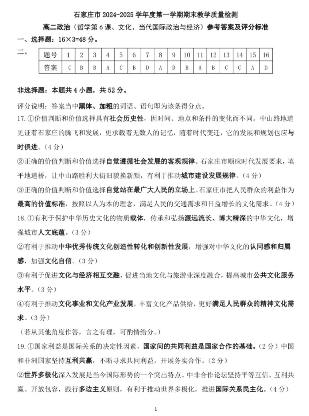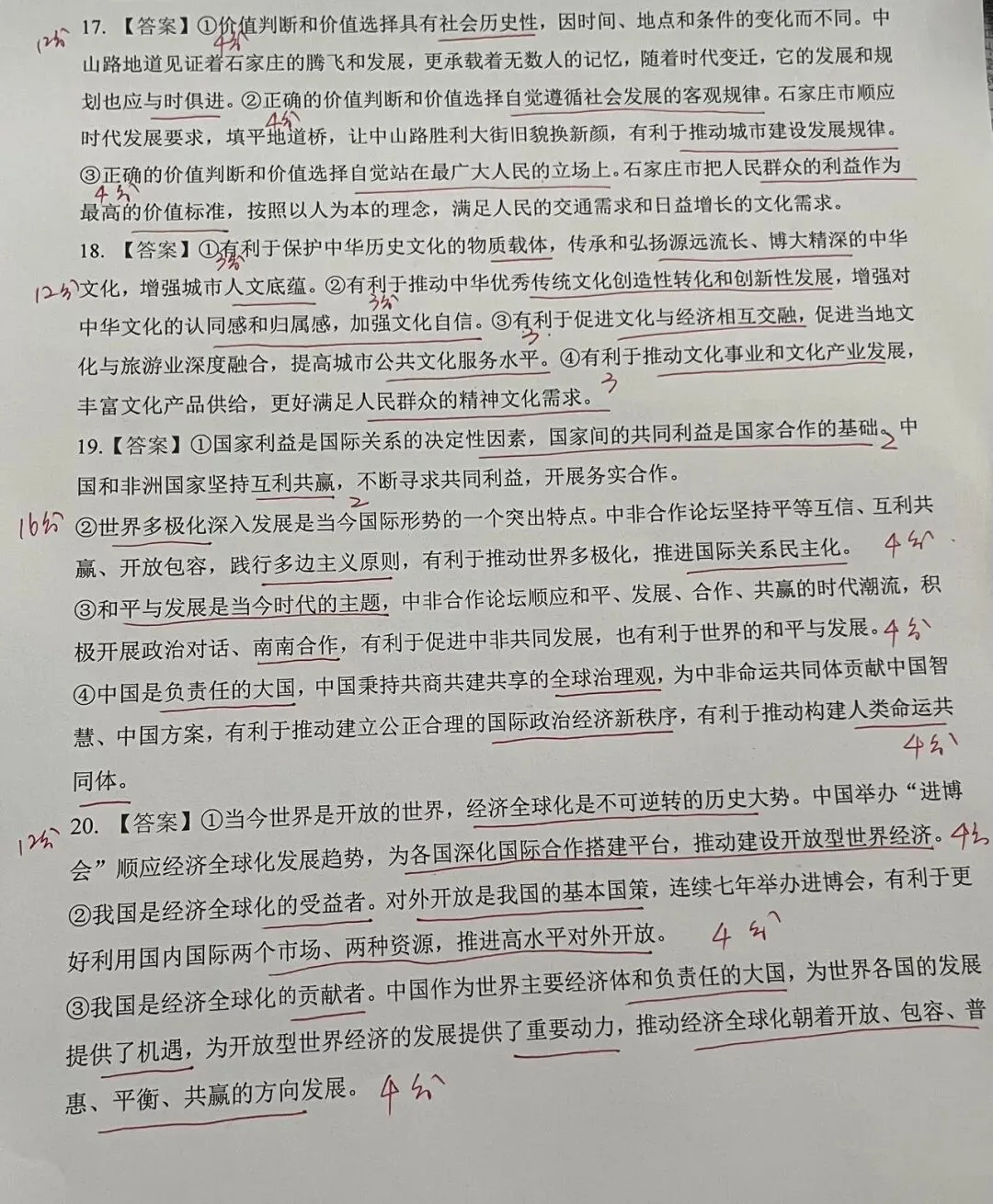 ①在价值选择的基础上作出价值判断,因人而异②保持平常心,从自身实际出发感受幸福快乐③社会提供的客观条件是实现人生价值的前提④价值观有导向作用,应该树立正确的价值观A. ①②B. ①③C. ②④ D. ③④2. 田华获得2024年“人民艺术家”的国家荣誉称号,她为中国电影塑造了一批有民族品质、有血有肉的新东方女性形象。离休后,她还积极参加国家的重大演出、赈灾义演等,积极关心扶助青年艺术从业者。她的事迹告诉我们( )①人生的真正价值在于对社会的责任和贡献②要始终把群体利益作为我们最高的价值标准③要在个人与社会的统一中创造和实现人生价值④只有成为能力卓越的人,才能创造卓越的人生A. ①② B. ①③ C. ②④ D. ③④3. 2024年11月,沉寂三年多的李子柒用雕漆隐花《紫气东来》作品宣告回归,迅速引爆全网。李子柒能成为网红中的顶流,最重要的是她的视频内容传播了中国传统文化的精髓。中国文化的发展就是在一代代文化工作者的薪火相传中不断创新的。绵延续中华传统文化,需要我们( )①挖掘中华优秀传统文化的当代价值 ②不忘本来,全面继承我国传统文化③以人民为中心,依靠人民贴近人民 ④把经济效益放在文化发展首要位置A. ①② B. ①③ C. ②④ D. ③④4. 茶文化与咖啡文化都象征着放松、注重品味的一种生活态度。但是咖啡不可能代替茶,茶也不可能征服咖啡。喜好喝茶的人可能会爱上咖啡,对咖啡的依恋也不妨碍我们品味茶的韵味。这启示我们,文化交往应( )①尊重差异,理解个性 ②各美其美,美人之美③相互借鉴,促进文化交融 ④认同和尊重其他民族文化A. ①② B. ①④ C. ②③ D. ③④5. 2024年11月,“西柏坡——依法治国从这里起航”巡展活动首站在山西百团大战纪念馆举办。党在西柏坡期间,站在治国理政的高度,共颁布法令规章200多项,从制度层面到法治层面进行了积极的探索,奠定了依法治国的基石。举办这一活动旨在( )①继承革命文化和中国特色先进文化 ②传承红色法治基因,坚持依法治国③发展我国文化产业,提升服务水平 ④续红色血脉,增强群众法治观念A. ①② B. ①③ C. ②④ D. ③④6. 习总书记在文化传承发展座谈会上指出,在新起点上继续推动文化繁荣、建设文化强国、建设中华民族现代文明,是我们在新时代新的文化使命。完成这一使命需要( )①坚持党的文化领导权,确保文化建设的正确方向②坚定对我国传统文化和社会主义先进文化的自信③贯彻习近平文化思想,为文化强国提供思想保证④加强国际传播能力建设,立足外来文化吸收借鉴A. ①② B. ①③ C. ②④ D. ③④7. 战火无情,国家有爱!由于局势严峻,大部分经过中东地区的航线都选择避开冲突区,只有中国飞机在炮火中逆行至黎巴嫩撤侨。截至2024年10月2日,中国用40小时安排两批次共215名中国公民分别搭乘轮船、包机安全撤离,令世界惊叹。这体现了( )①我国坚持总体国家安全观,以人民安全为根本②我国有能力通过行使自卫权保障海外公民安全③主权国家依据国际法享有管辖权④我国坚定地维护本国人民的根本利益A. ①② B. ①③ C. ②④ D. ③④8. 2024年12月3日晚,韩国总统尹锡悦突然宣布实施“紧急戒严”。这是44年来韩国首次实施戒严令。6个多小时后,尹锡悦决定接受国会要求,宣布解除戒严令。12月8日,韩国最大在野党共同民主党党首李在明宣布,将推动14日再次进行总统尹锡悦弹劾动议案表决。12月14日下午,韩国国会通过尹锡悦总统弹劾案。从紧急戒严到总统弹劾案通过,可以看出韩国最有可能是( )①总统制国家 ②议会制国家 ③多党制国家 ④两党制国家A. ①③ B. ①④ C. ②③ D. ②④9. 特朗普胜选后于当地时间2024年11月25日晚间威胁,在上任后首日,对来自中国的所有进口商品加征10%的额外关税。关于美国对华加征关税的问题,中方认为,中美经贸合作的本质是互利共赢,贸易战、关税战没有赢家。这说明( )①竞争、合作和冲突是当前国际关系的基本内容②霸权主义和强权政治成为严重的新的安全威胁③加深信任、扩大合作才是中美两国的正确选择④国家利益的对立是中美两国间出现冲突的根源A. ①② B. ①③ C. ②④ D. ③④10. 受巴以冲突影响,巴勒斯坦经济继续大幅衰退。2024年上半年,巴勒斯坦实际GDP同比下降33.6%,降幅较上年同期扩大36.5个百分点。这说明( )①和平是发展的前提 ②发展是实现和平的基础③地区和平是解决一切问题总钥匙 ④战乱和冲突不利于地区经济发展A. ①③ B. ①④ C. ②③ D. ②④11. 2024年6月28日,习近平总书记出席和平共处五项原则发表70周年纪念大会并发表重要讲话,全面阐释了和平共处五项原则的精神内涵和时代价值,指出了面对世界百年变局构建人类命运共同体的前进方向。和平共处五项原则( )①是我国外交政策的基石 ②是我国对外关系的基本准则③是习近平外交思想的核心理念 ④为新时代中国外交提供了根本遵循A. ①② B. ①③ C. ②④ D. ③④12. 比较优势理论认为如果一国生产某产品机会成本低于另一个国家,则该国生产某产品存在比较优势。根据下表信息,运用比较优势理论,在不考虑其他因素的条件下,可以推断出( )项目 大米(每人的劳动生产率) 计算机(每人的劳动生产率)甲国 900千克 8台乙国 1200千克 16台①甲国在大米生产方面存在比较优势 ②乙国在大米生产方面存在比较优势③甲国