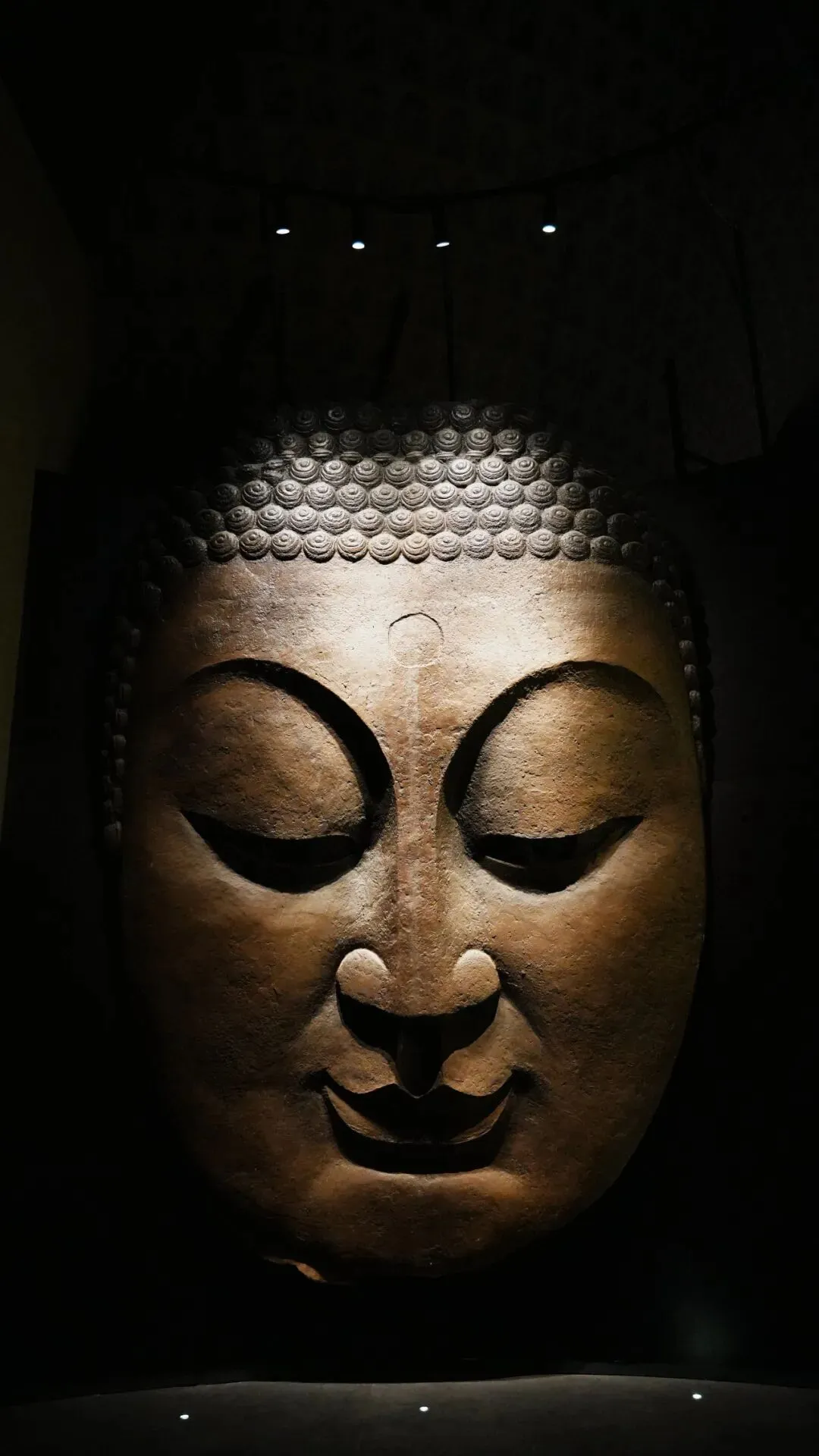 第三站:在二楼还有一尊唐代红砂石罗汉头像,小圆脸,肉乎乎,眉眼弯成月牙,很讨喜。最近成了新晋“断层C位”。