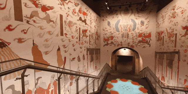 这里蕞绝的是有一座1:1比例复原的湾漳北朝大型壁画墓。整个壁画墓全长52米,由墓道、甬道和墓室组成。