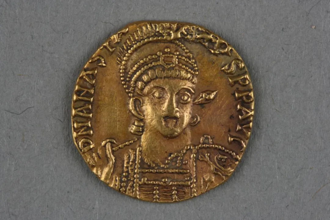 茹茹公主是北齐与柔然的“政治联姻产物”,她的陪葬物品丰富,除了大量精美的壁画、金质和铜质的饰物、陶俑等,还有两枚拜占廷帝国的金币。