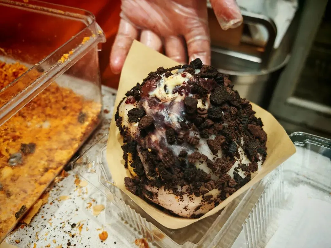 金吉利麻糍以“糯叽叽”的口感和丰富的馅料著称,每个麻糍都超大一个,用料满满,售价为12元。它的外皮是用牛奶和进口三相糯米粉制作的,无水无糖,q弹不粘牙。里面可以搭配雪糯米、芋泥,还能任选两种新鲜现切的水果,如草莓、芒果、凤梨等,再加入安家奶酪,最后裹上肉松、薄脆或奥利奥等,口感丰富,甜而不腻。