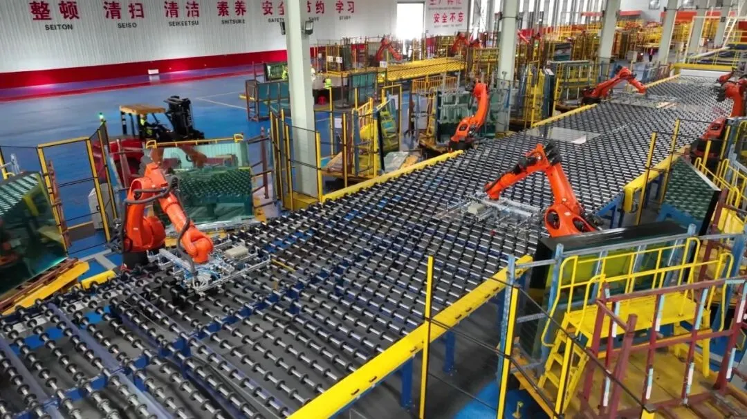 在河北德金玻璃有限公司车间,机械手精准抓取玻璃原片。资料图片