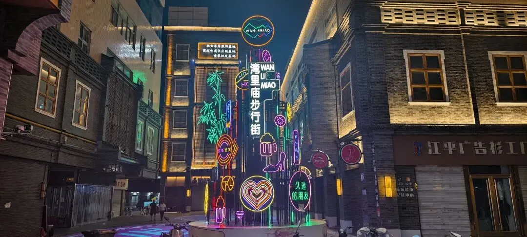 相传隋炀帝之女南阳公主于苍岩山福庆寺出家,被尊为“苍岩圣母”,百姓纷纷前来祈福。明朝信徒朝拜苍岩圣母后,恭请石像运至七里湾时圣母显灵,便在此化缘,于万历十八年建成“苍岩圣母庙”,也叫“七里湾庙”,后简称“湾里庙”。随着庙会的发展,商贸活动聚集于此,湾里庙由此成为石家庄商贸文化的发源地。20世纪初,随着正太铁路的开通,大石桥、正太饭店、同乐街等标志性建筑相继落成。1945年,同乐街更名为民族街。1953年,石家庄第一届物资交易会在湾里庙举行,进一步奠定了其商贸中心的地位。1987年,新华集贸中心市场鸣锣上市,成为华北地区重要的商品集散地。2022年,民族路步行街更名为湾里街步行街,焕然一新的步行街开街运营,迅速成为城市新地标。2023年11月,被商务部评为“全国示范步行街”,2025年1月获评“国家级旅游休闲街区”。湾里庙见证了石家庄城市的变迁,是石家庄这座城市珍贵的“历史记忆”和“商贸内核”。崭新的湾里庙步行街以打造有品质、有颜值、有内涵的国家级综合性示范型步行街为目标,致力于成为石家庄的城市会客厅、区域文化消费聚集区及全国网红打卡地,续写着这座城市的辉煌篇章。碑文注释
