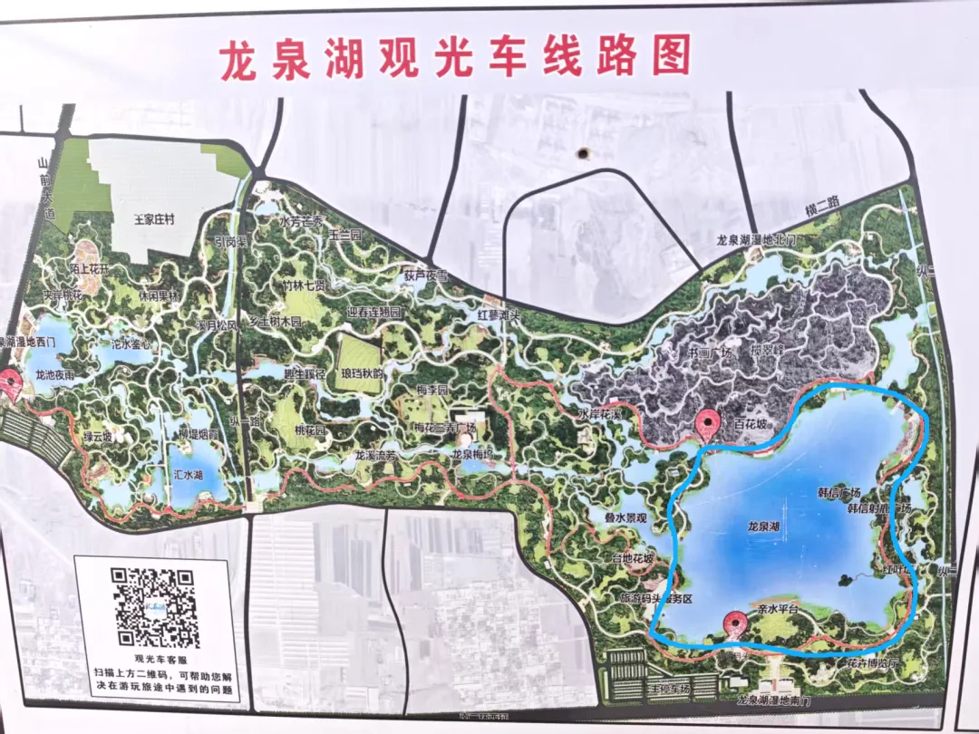不过大部分人走的路线应该都是停车场以东的部分,环湖而走,从整个面积来看,不足整个湿地公园的1/3,如图右下角蓝色路线: