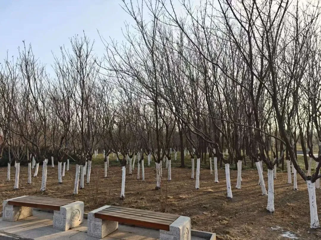 继续往西北方向走,可以依次看到梅园、连翘园、桃园、竹林七贤和玉兰园等等,由于是冬天,所以桃园、玉兰园这些还都是萧瑟的树杈,开春之后应该会很好看。