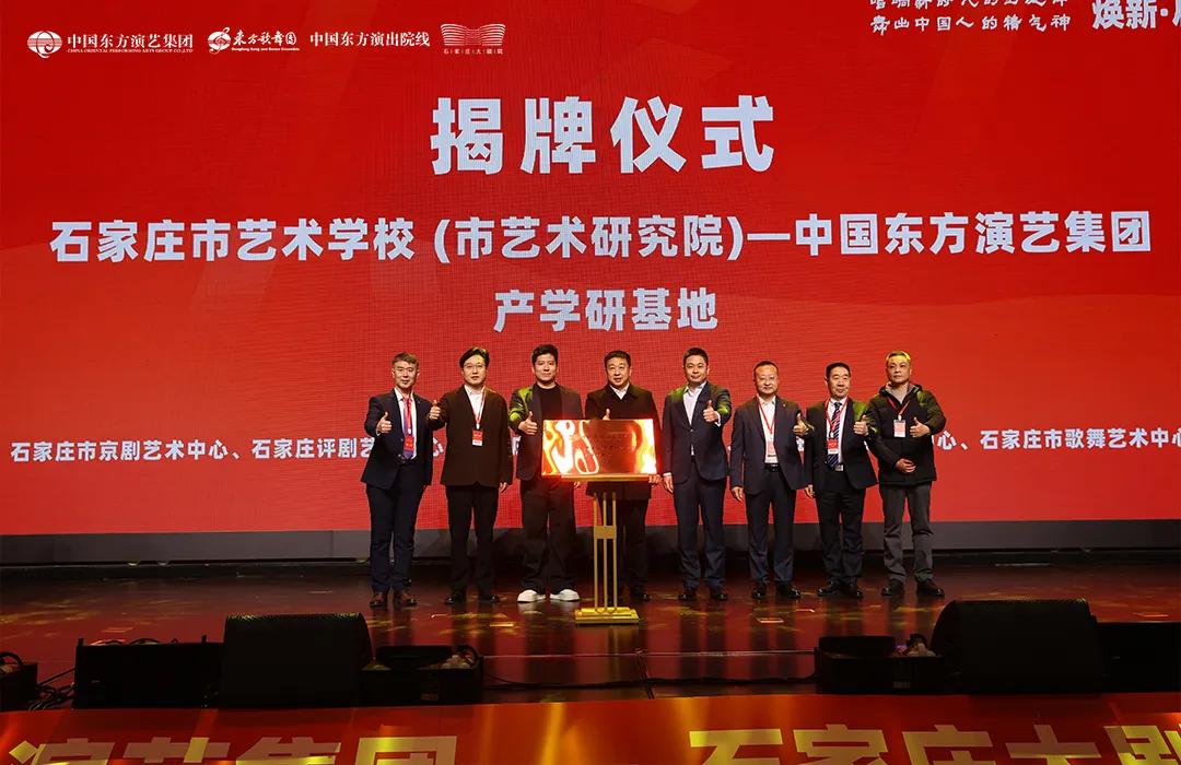 在“产学研合作基地揭牌”环节,业主单位石家庄市艺术学校(市艺术研究院)与运营单位中国东方演艺集团代表共同揭牌。此次合作,依托石家庄大剧院,将携手本地艺术院校、艺术中心深度合作,整合资源,搭建起青年艺术人才从课堂到舞台的成长阶梯,实现国家级艺术资源与本土实践教学的深度交融,为艺术人才培养注入新的活力。