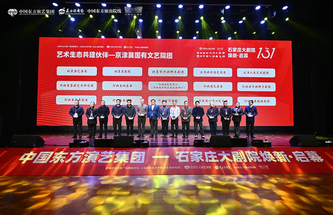 随后的“艺术生态共建伙伴” 颁牌仪式上,中国东方演艺集团将以石家庄大剧院为锚点,以北京演艺集团、北京京剧院、北京市河北梆子剧团、天津北方演艺集团、天津人民艺术剧院、河北演艺集团、河北省河北梆子剧院、河北省歌舞剧院、河北省杂技团、河北省话剧院、河北省心连心艺术团、河北省承德话剧团、河北省京剧艺术研究院、河北交响乐团、河北省艺术中心15家“艺术生态共建伙伴”联动,进一步推动京津冀跨区域演艺资源共享与剧目流通,助力石家庄市在京津冀演艺市场协同发展中注入新活力、迈上新台阶。