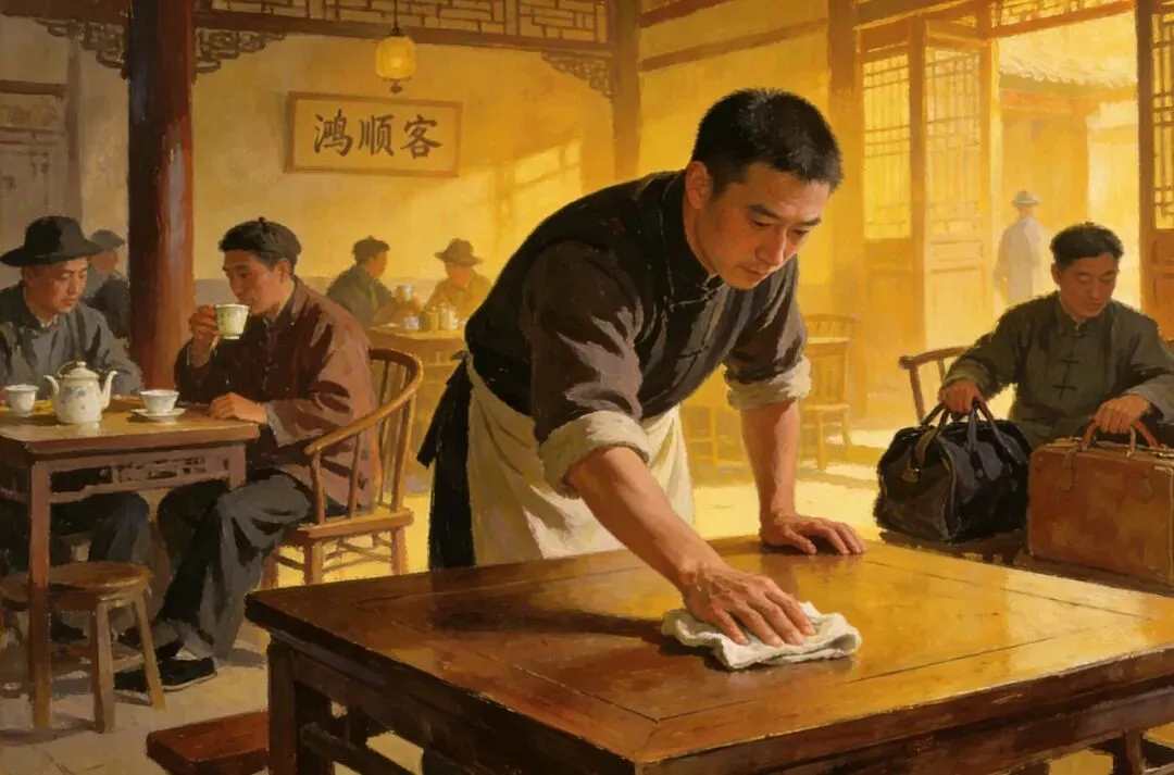 王七喜出望外,当即给李广心磕了个头。自此后,他便在鸿顺客店当了伙计,往日的顽劣尽数收了,干活格外勤快。挑水劈柴,抹桌扫地,招呼来往客商,样样做得周全,眼头活,嘴也甜,客商们都喜欢这个壮实的馆陶小伙,李广心更是把他当半个亲娃看,闲时还教他识几个字,讲些江湖道理、处世规矩。