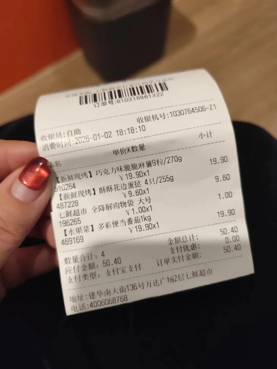 裕华万达广场二层,京东七鲜首店开业。我是个喜欢逛超市的人,所以虽然有点累了,还是进去转了转。感觉价格真不贵,个别水果很便宜,例如可以免费试吃的砂糖橘,不过砂糖橘有点酸,我这个人但凡酸一点的水果都不吃。麻薯挺好吃的,蛋挞也可以,挺便宜的,花挞造型很可爱。