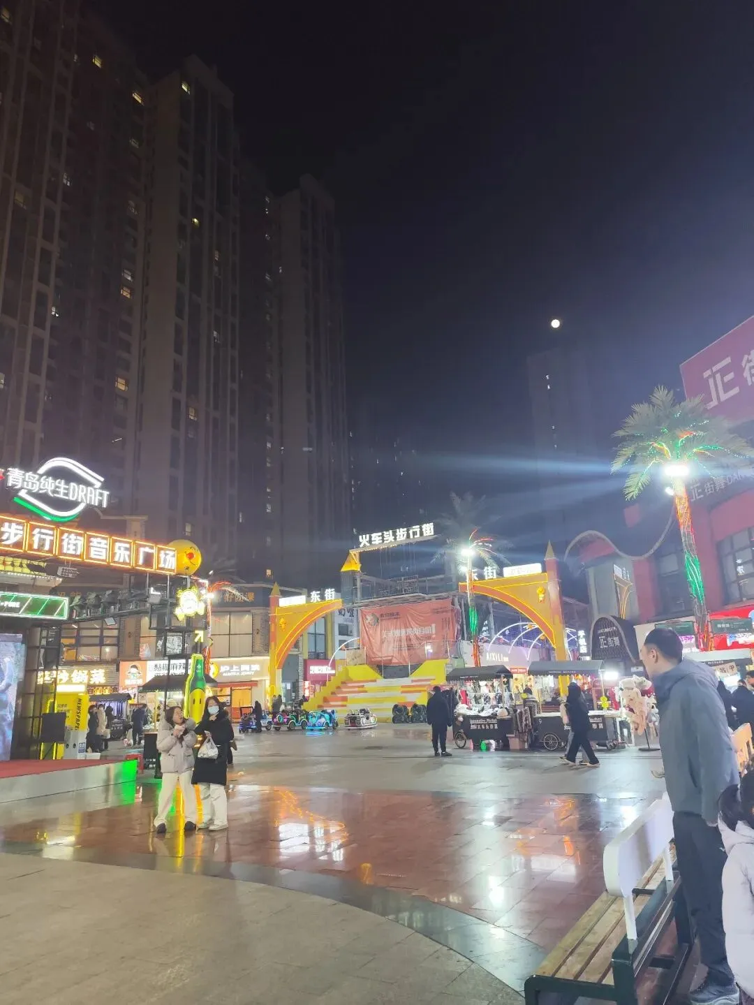 冬天挺冷的,但是火车头步行街的人可不少。