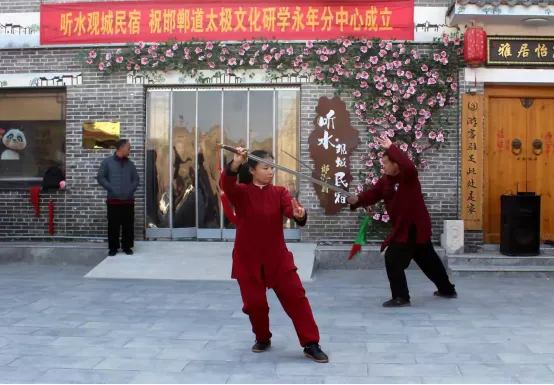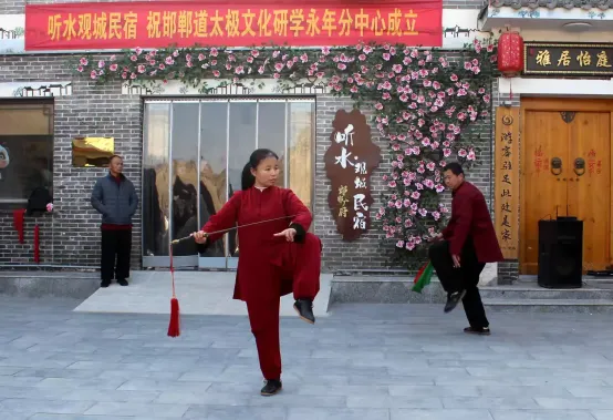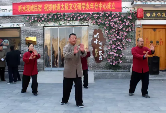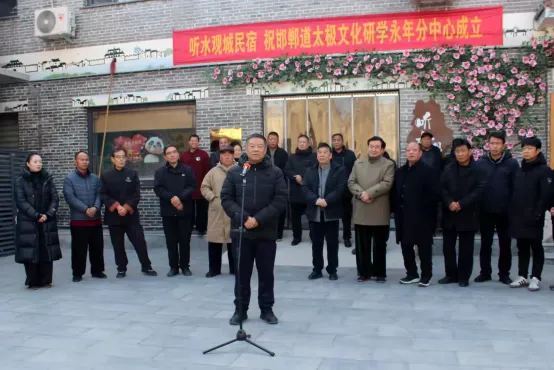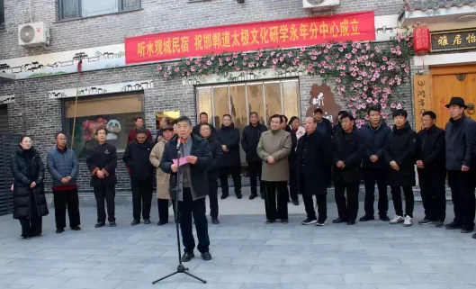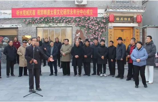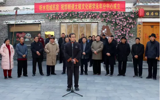 2026年1月2日上午,河北省太极拳健康学会·邯郸太极文化研学中心永年分中心揭牌仪式在永年区广府城“听水观城民宿”小广场隆重举行。此次仪式以“传承太极文化,聚合太极资源,携手同行,共谋发展”为主题,标志着邯郸永年太极文化发展迈入市区联动、携手助力、共绘新篇的新阶段。