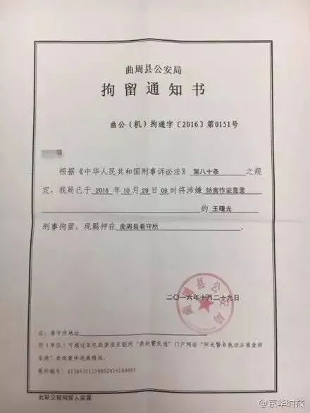 ▲2016.10.29被曲周县公安局同罪名再拘留