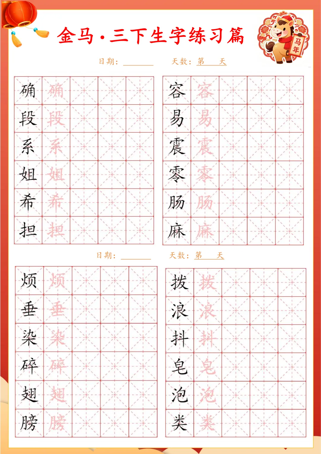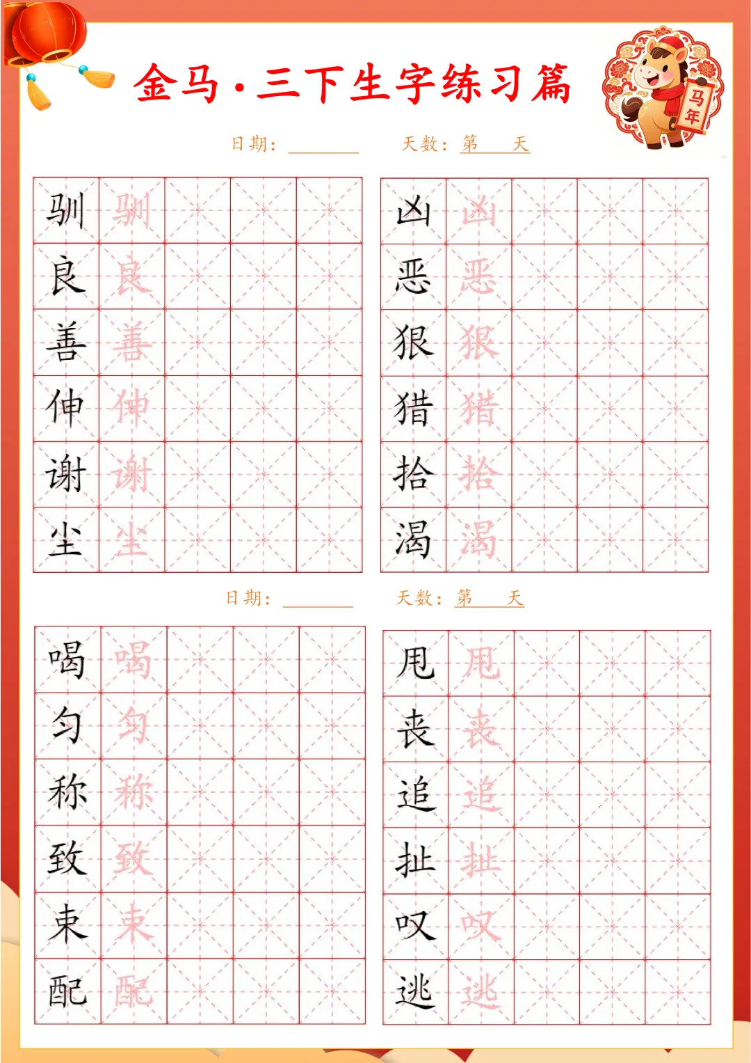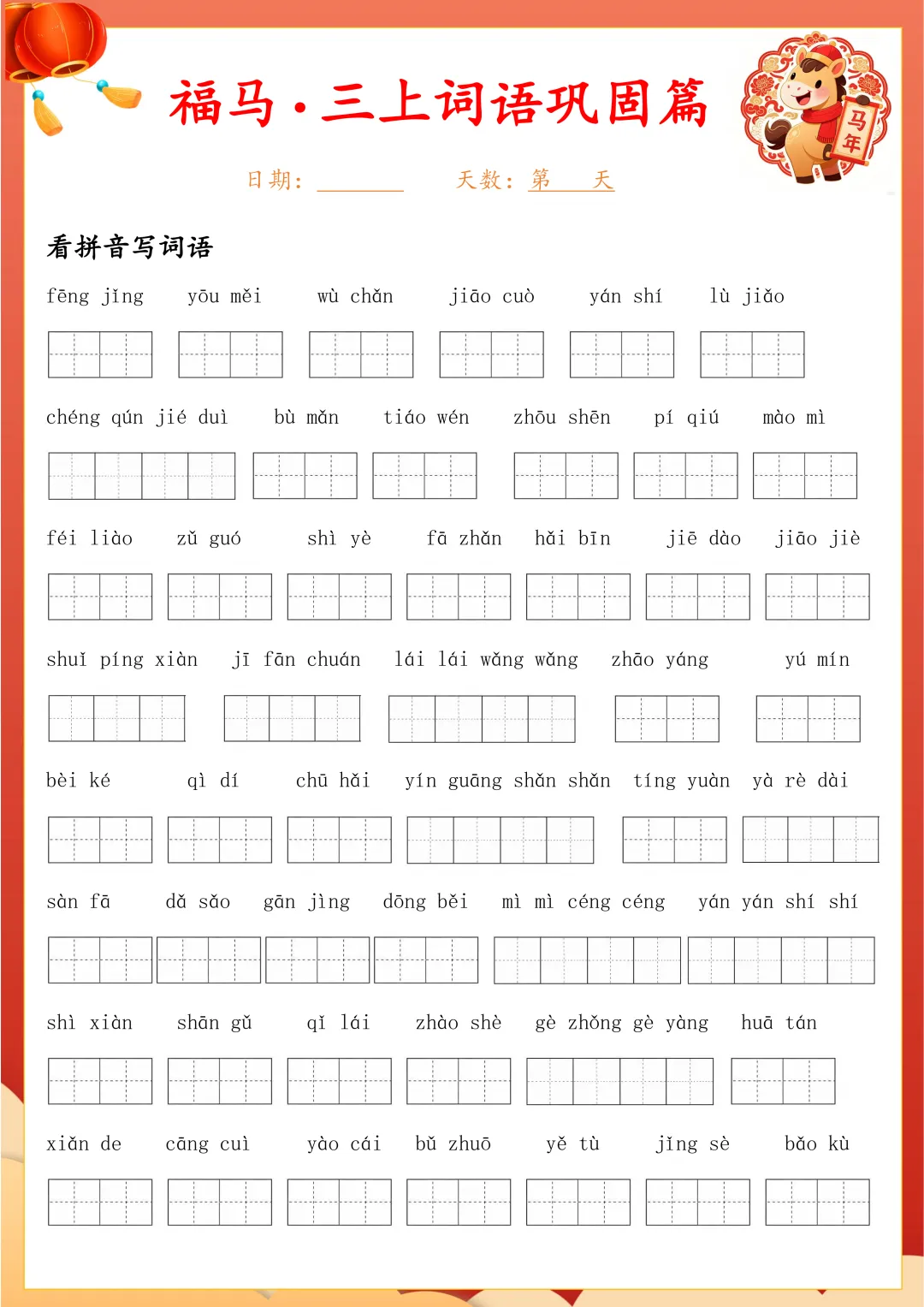 时序更替,寒假启幕。2026马年新春将至,邯郸市张建敏小学语文名师工作室紧扣三年级学段特点,以“骐骥驰骋 乐享寒假”为主题,精心设计融合基础巩固、文化传承与生活实践的寒假语文作业,让孩子们在笔墨书香与年俗雅趣中,度过一个有温度、有深度的假期。
