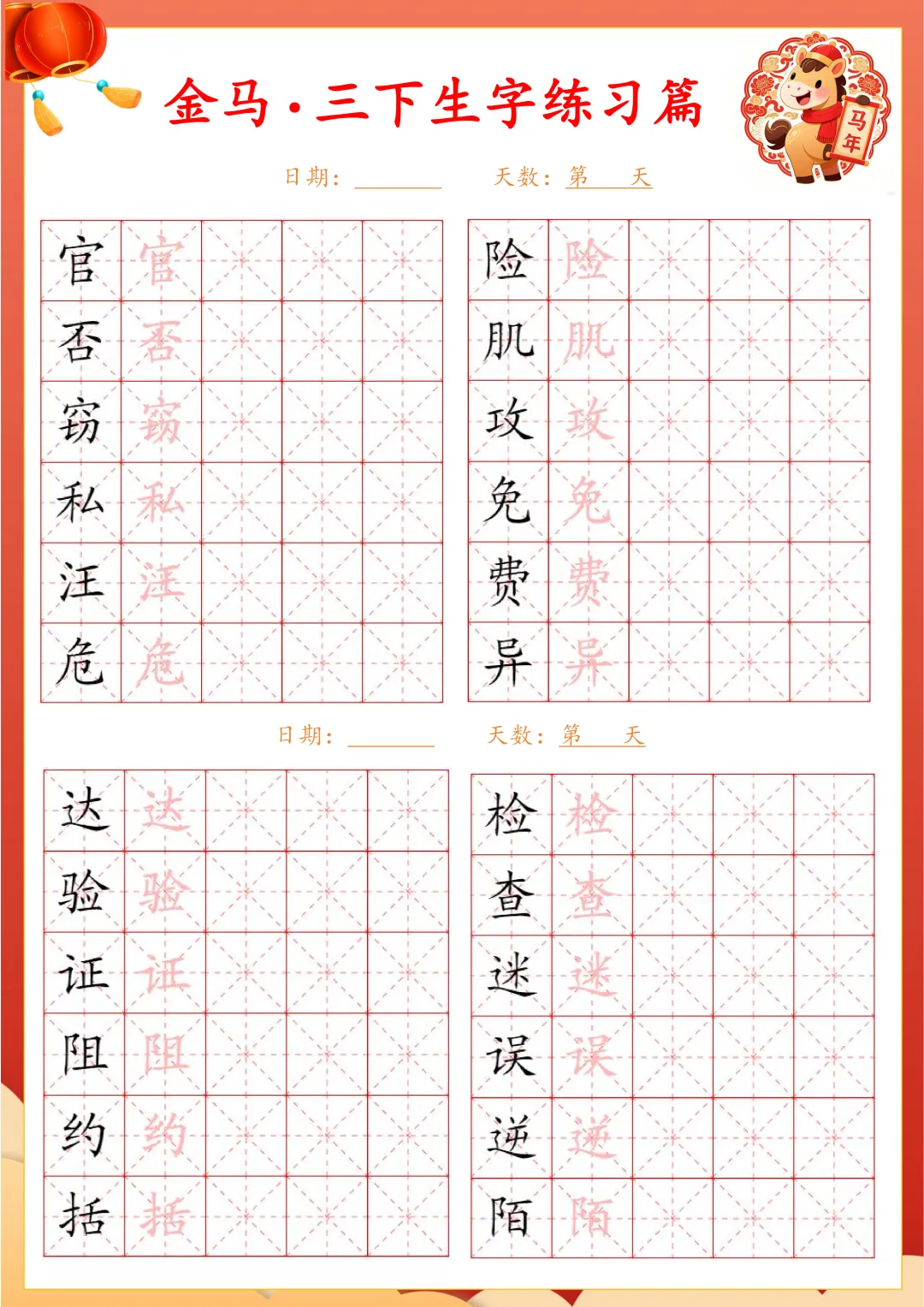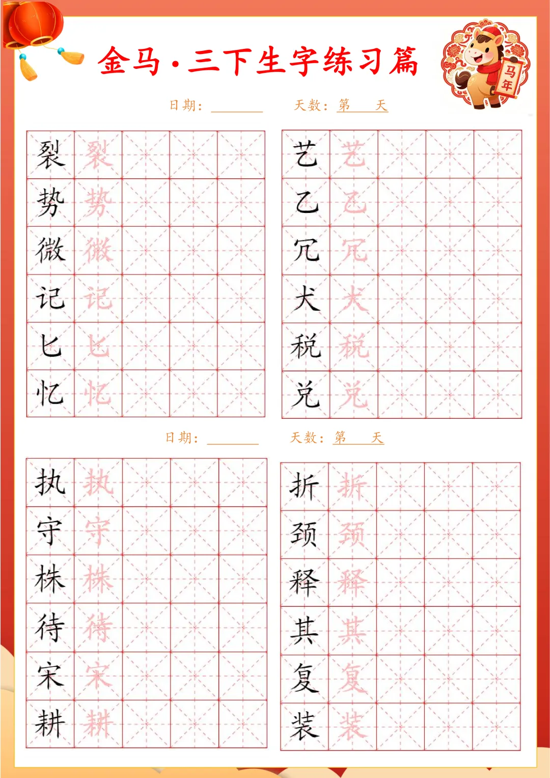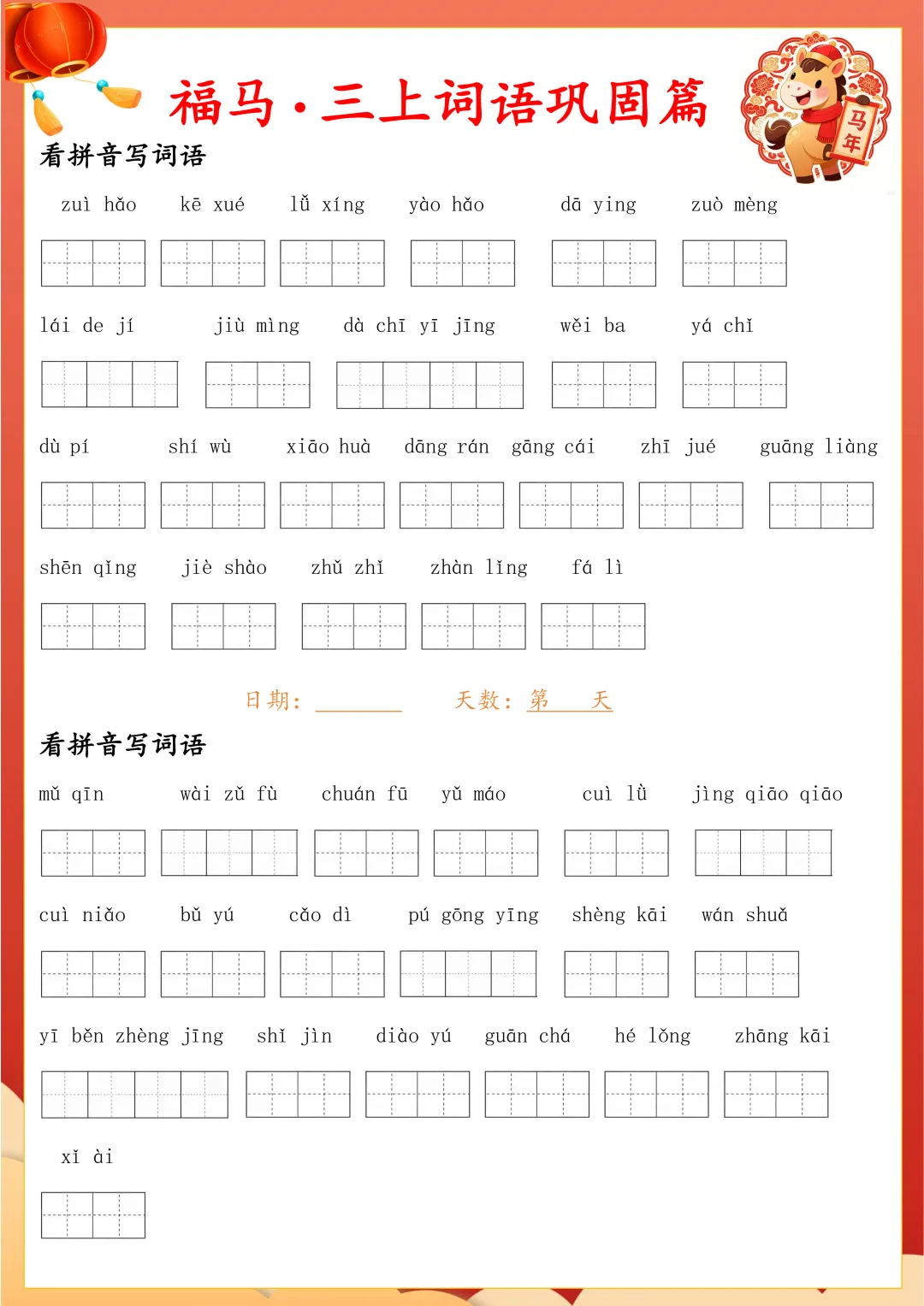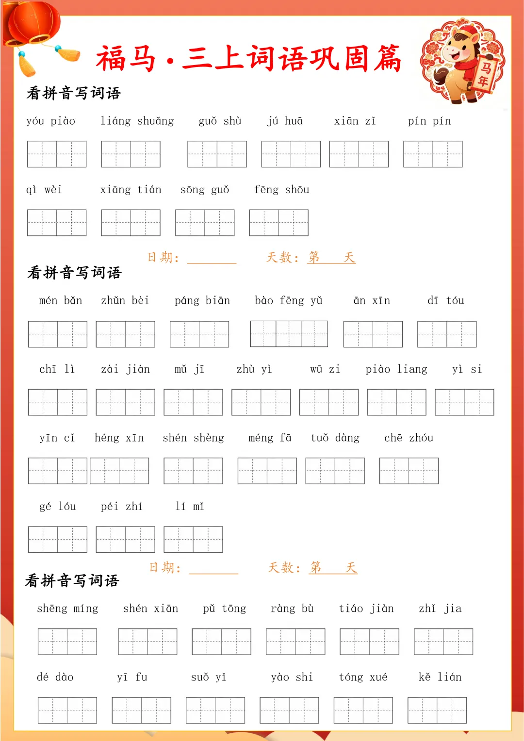 时序更替,寒假启幕。2026马年新春将至,邯郸市张建敏小学语文名师工作室紧扣三年级学段特点,以“骐骥驰骋 乐享寒假”为主题,精心设计融合基础巩固、文化传承与生活实践的寒假语文作业,让孩子们在笔墨书香与年俗雅趣中,度过一个有温度、有深度的假期。