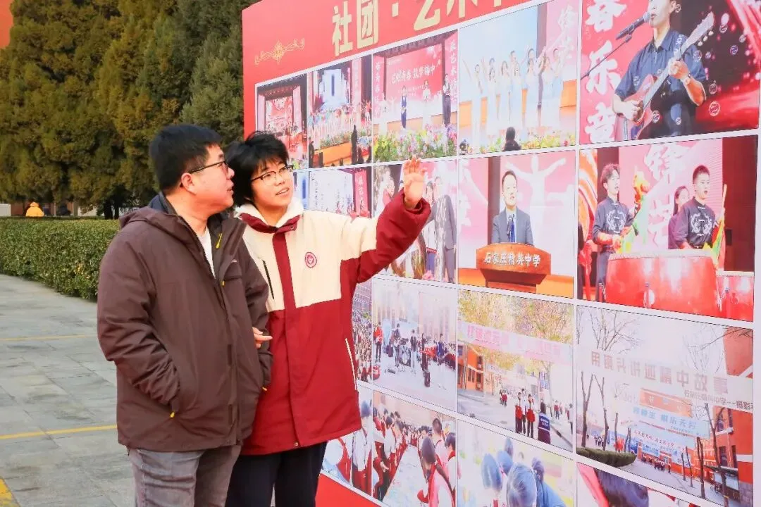 上午8时起,家长们陆续进入校园。同学们引导家长参观校园,介绍着自己丰富多彩的校园活动,并在学习生活的场所合影留念。