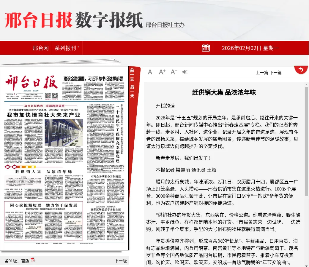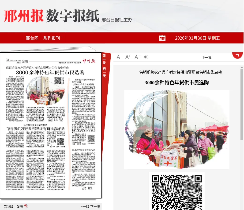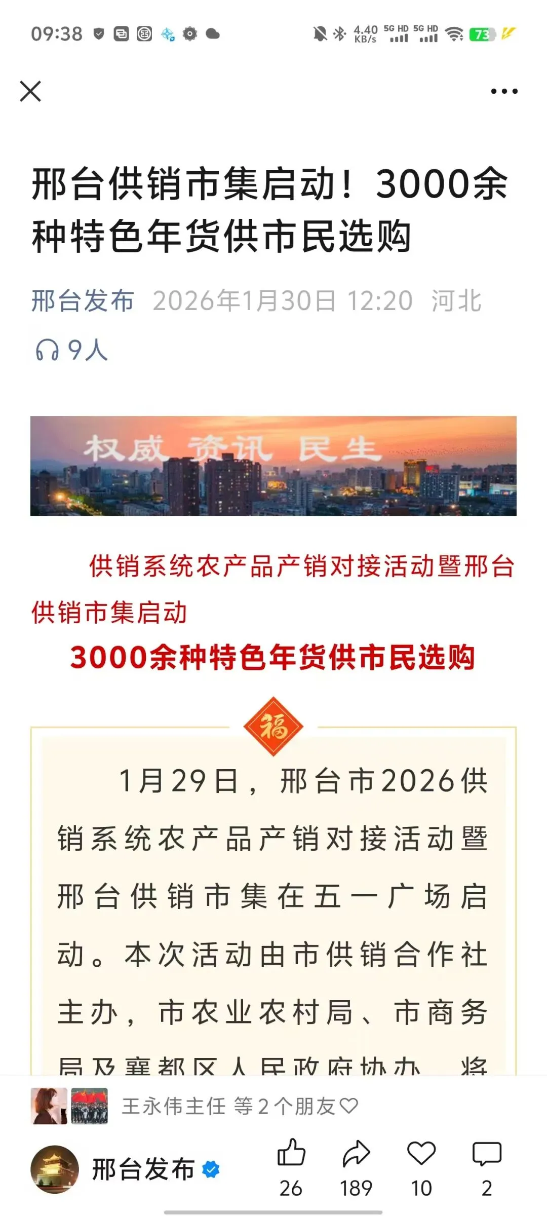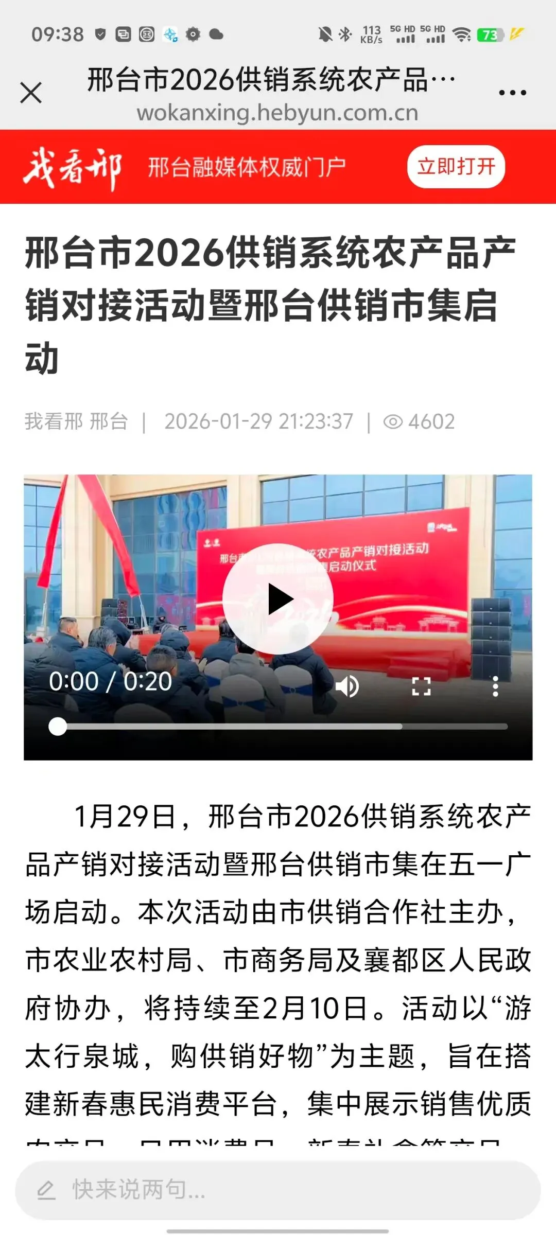 近日,邢台市2026供销系统农产品产销对接活动暨邢台供销市集在邢台市供销五一广场成功举行,被多家媒体广泛报道,反响热烈。燕赵晚报、燕赵都市报、邢台日报等多家省市媒体予以报道,为太行泉城的新春佳节增添了一抹亮色。