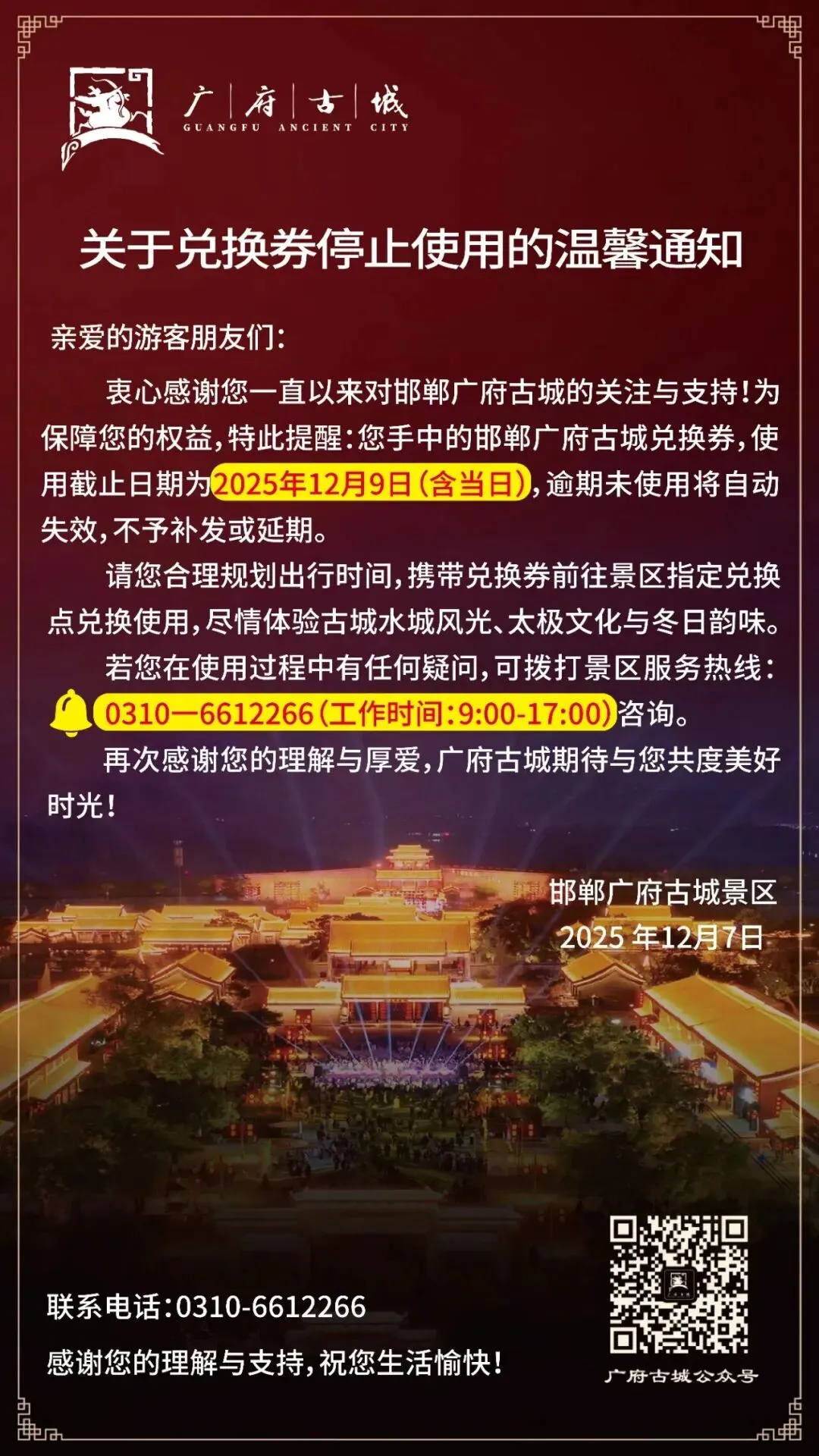速看!邯郸广府古城兑换券使用期限提醒及出行指引