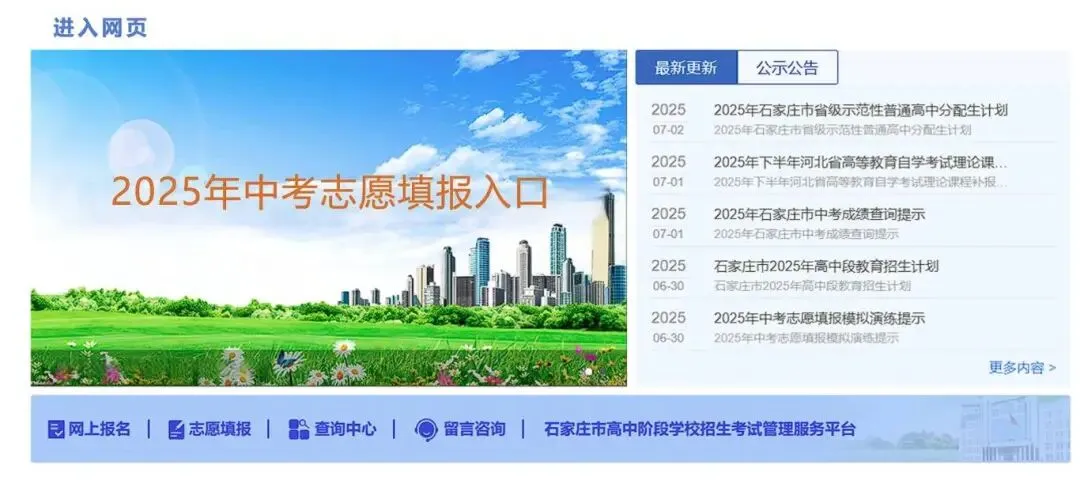 8.考生可在石家庄市教育考试院官方网站或“中招服务平台”查询《2025年石家庄市中考招生简章》及石家庄市招生录取相关文件。
