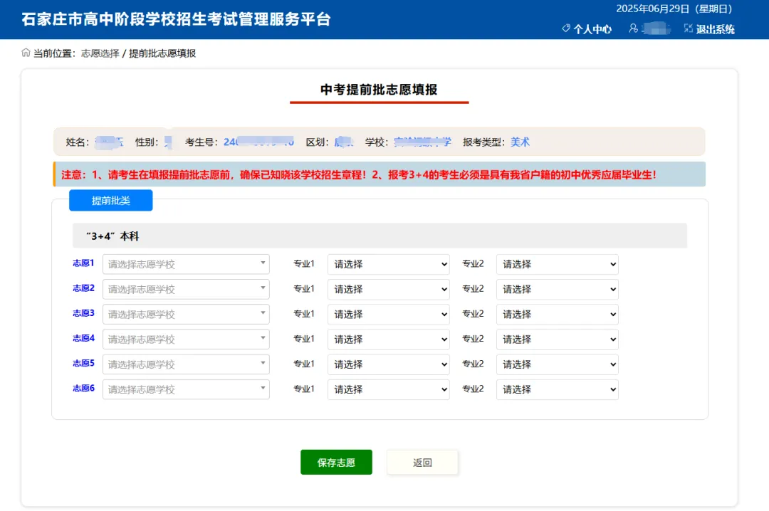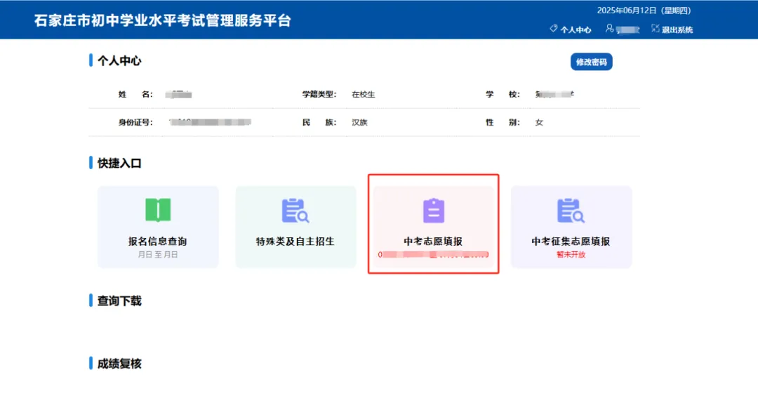 三、2025年石家庄中考考生志愿填报操作说明