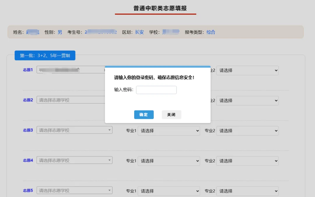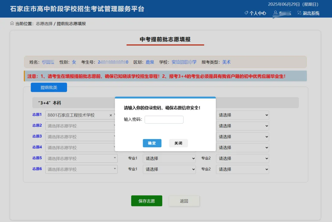志愿保存时,须再次输入考生登录密码,保护志愿安全。