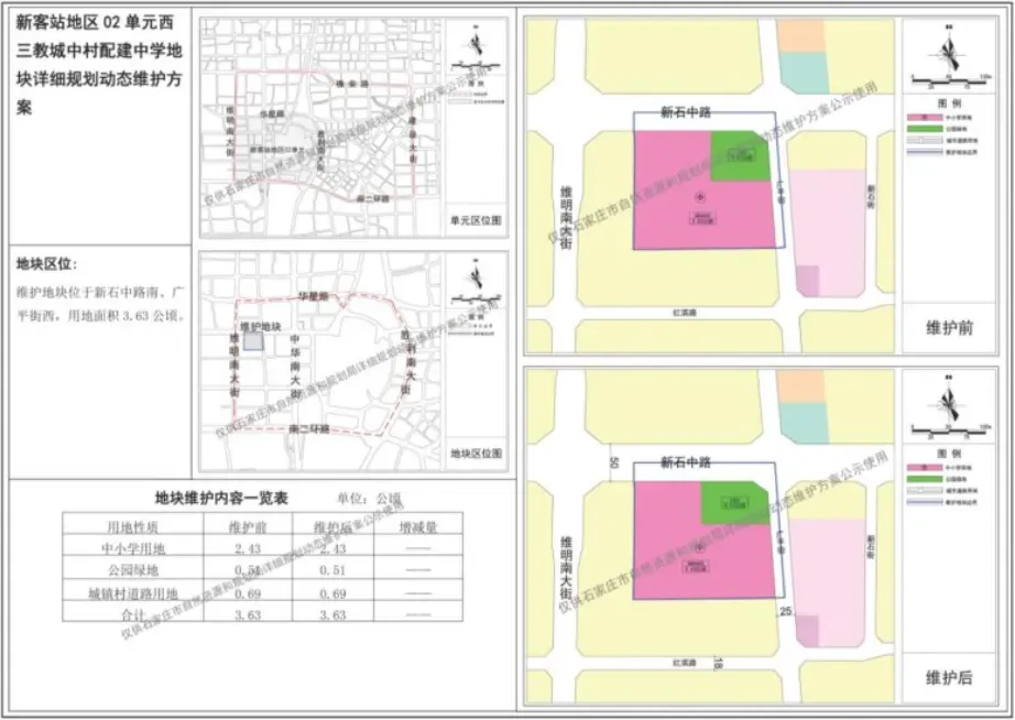 新客站地区02单元西三教城中村配建中学地块详细规划动态维护方案的公示。