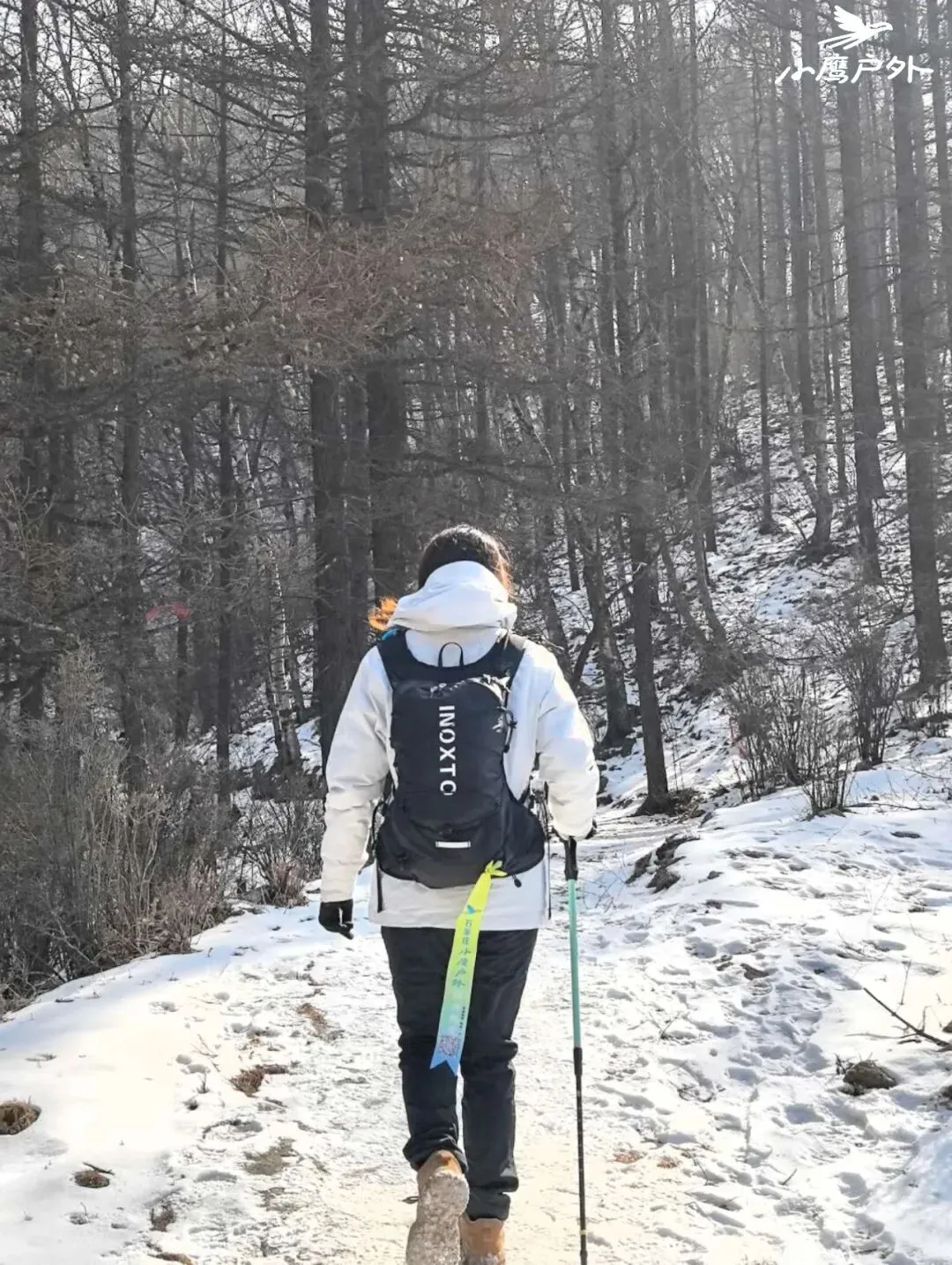 徒步装备:徒步鞋或防滑运动鞋,冲锋衣,速干衣服,登山杖,雪套,冰爪。