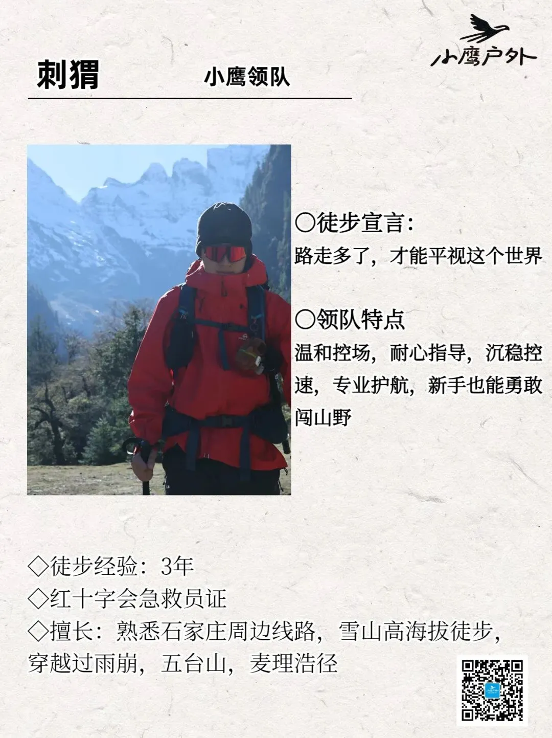 •保险:赠送专业户外保险(请报名的时候在小程序里填写真实姓名和身份证号码,如因信息不准确造成保险无效的,风险自负)