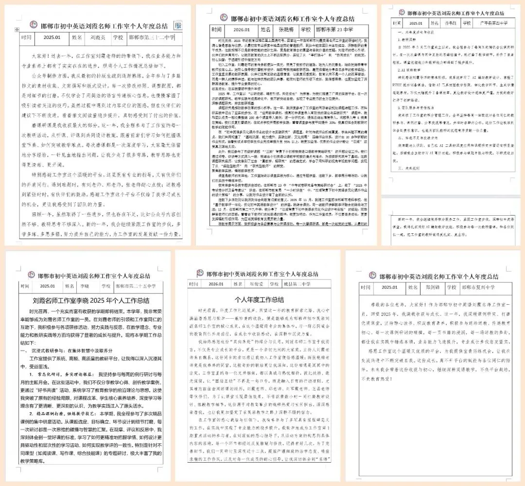 时光更迭,笃行不怠,又一年深耕细研的英语教研之旅圆满收官。回首这一年,是教学实践不断精进、教研理念持续落地的一年,更是邯郸市初中英语刘霞名师工作室全体成员同心聚力、互学共进、拔节成长的一年。1 月 31 日晚,工作室全体成员云端相聚,顺利召开年度线上总结会。回望2025 年,工作室坚守 “以初中英语教研为核心、名师引领为支撑、资源共享为目标” 的定位,聚焦教师专业成长与教育教学革新,通过多元举措推动区域英语教育高质量发展,各项工作取得丰硕成果。此刻,让我们一同展开这幅以热爱执笔、以笃行着色的年度画卷,细数成长的印记,共话教育的初心。