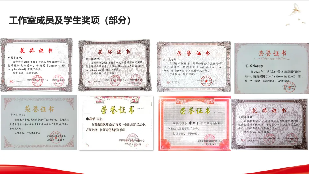 成员及辅导学生斩获省市级教学案例、优质课等多项奖项,有效推动区域教育均衡发展。
