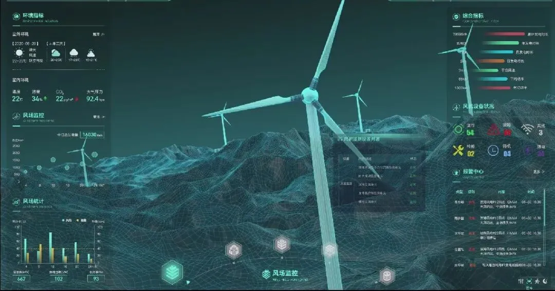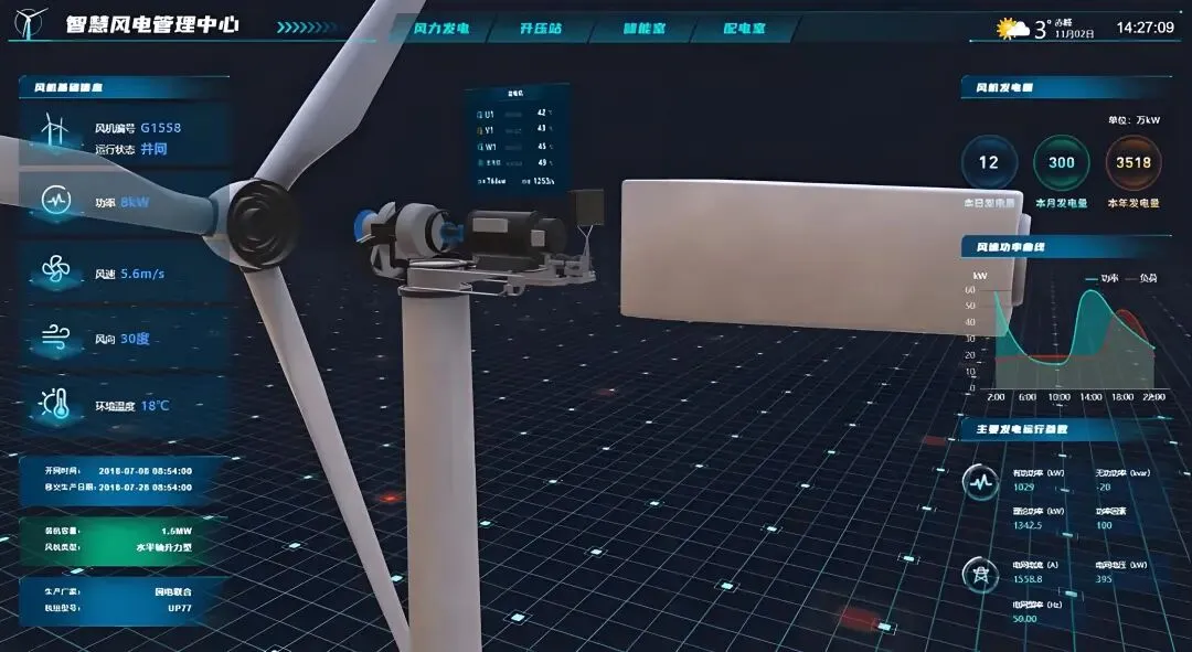 风电场3D模型数字孪生系统、大数据智能分析性能评估系统、设备状态监测数据分析及故障智能诊断等运管功能,并研发、部署相应的软硬件设备。