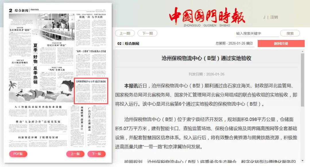 石家庄海关一周新闻速递(2026.1.26-2026.2.01)
