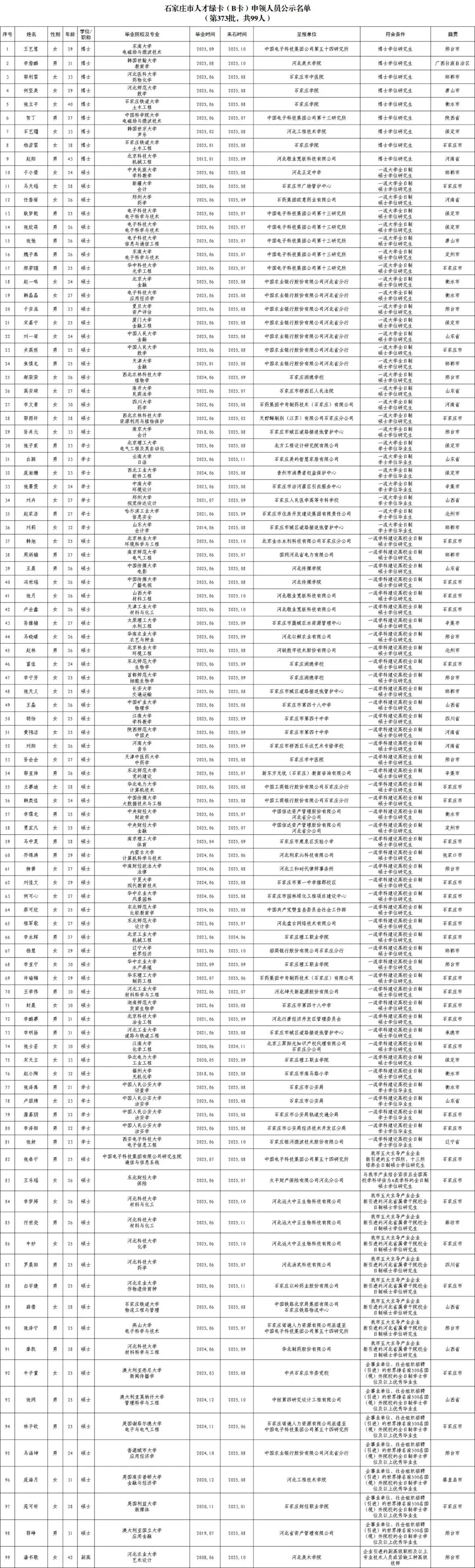 根据《石家庄市人才绿卡(B卡)管理办法(试行)》规定,经过本人申请、网上预审、单位审核、资格复审,拟为申请对象发放人才绿卡(B卡)。