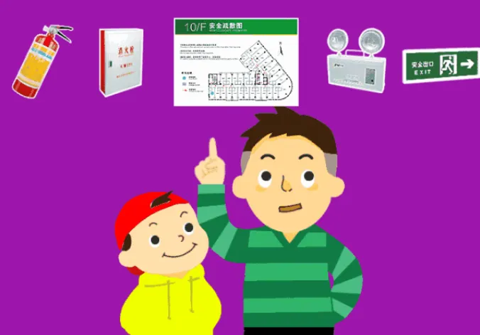 3.和孩子一起查找家庭火灾隐患,共同绘制家庭疏散逃生路线图并进行演练。