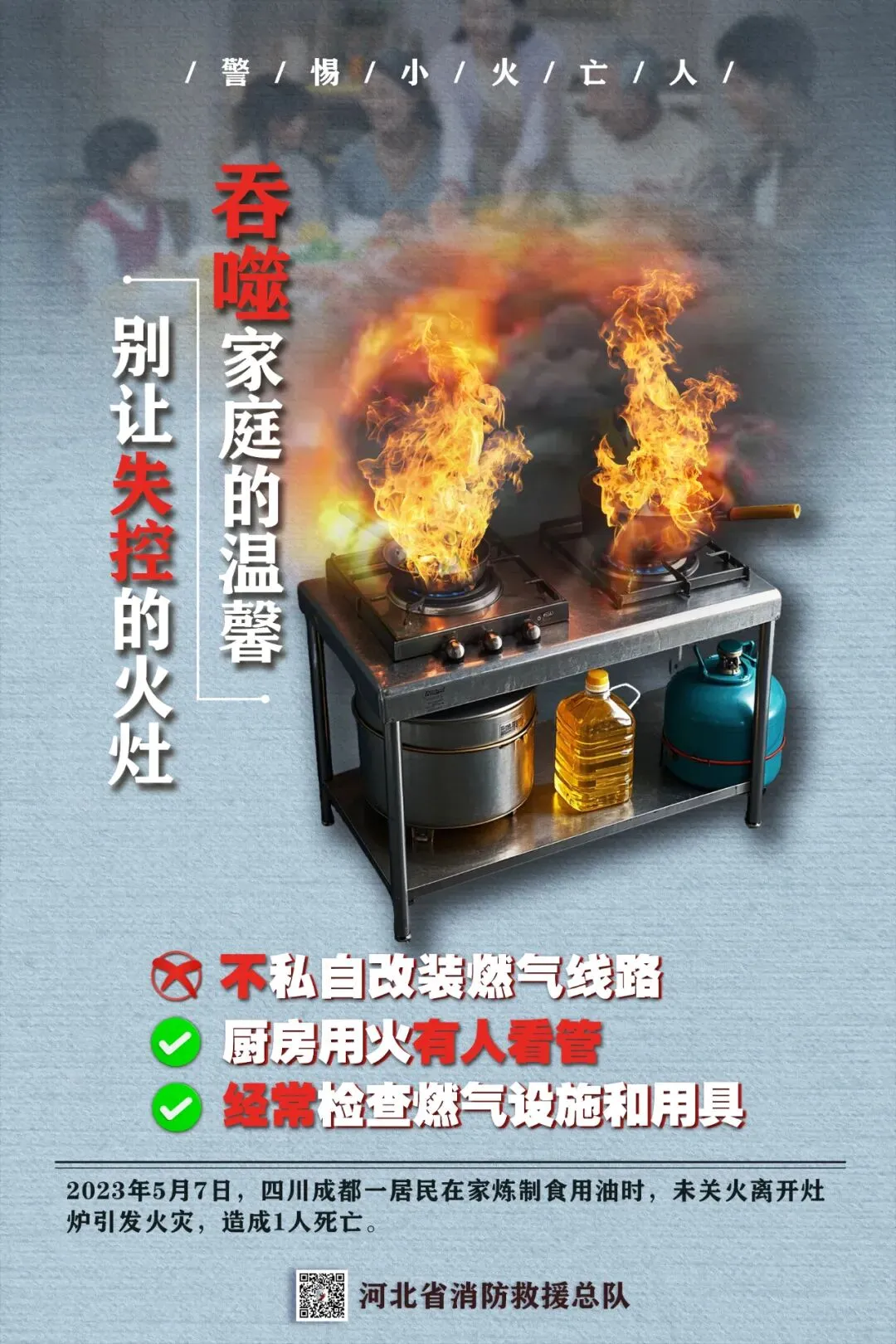 2.教育儿童不玩火,不要独自尝试动火做饭、触动电气设备,家长妥善存放家中打火机等火种。