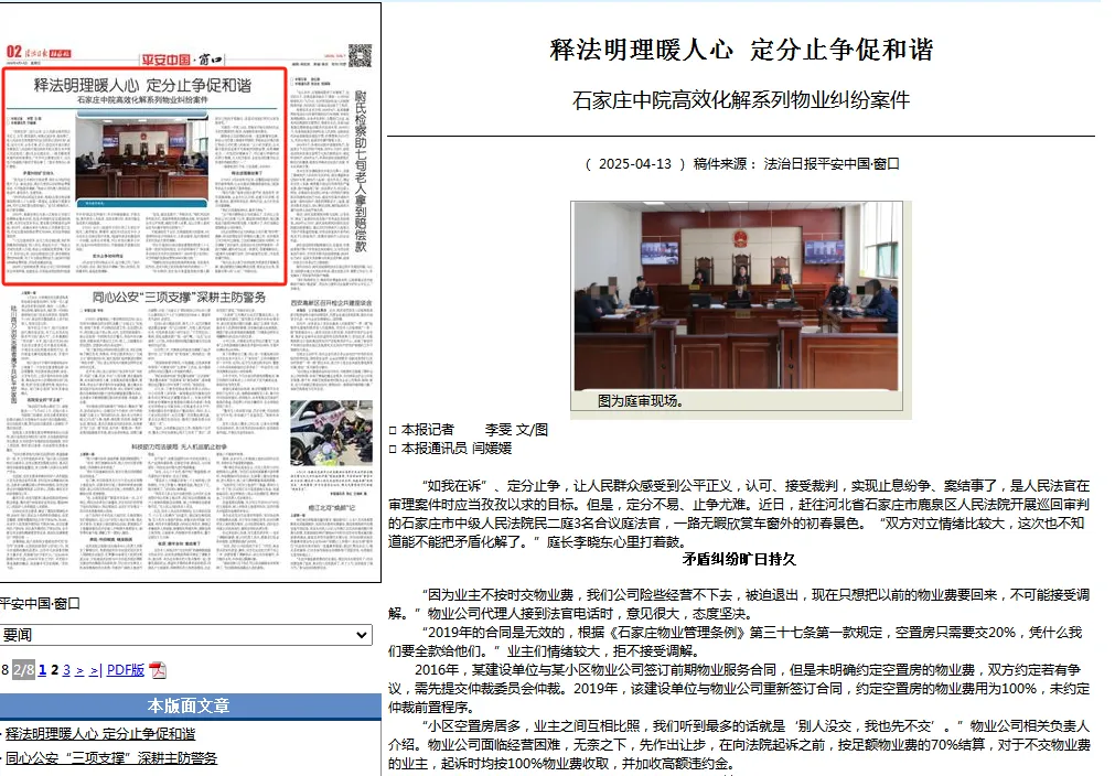在两会召开之际,石家庄中院特别推出“媒体记录下的石家庄法院”系列,让我们跟随小编的脚步,集中回顾过去一年媒体对石家庄法院为大局服务、为人民司法的客观记录和精彩报道。