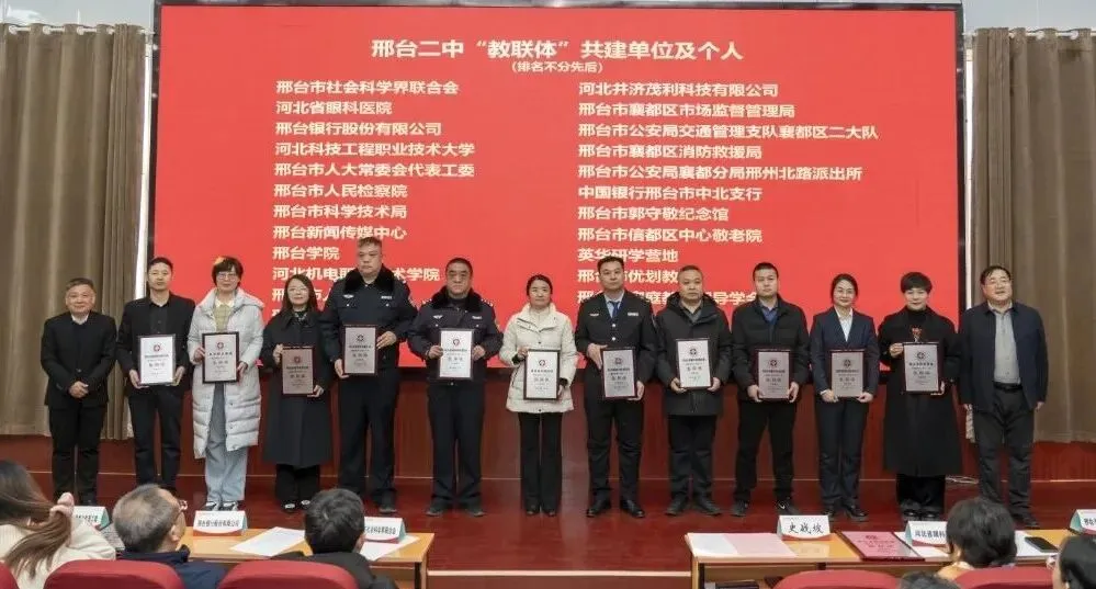 启动仪式上,象征着各方力量凝聚的拼图嵌入环节令人印象深刻,主管部门的政策引领、社会单位的资源支撑、家庭的情感根基与学校的育人核心紧密相连,共同绘就家校社协同育人的同心圆。随后,邢台二中向包括邢台市中医医院在内的24家共建单位及个人颁发了教联体共建证书,一纸证书承载着协同育人的郑重承诺,也为医院与学校的深度合作奠定了坚实基础。