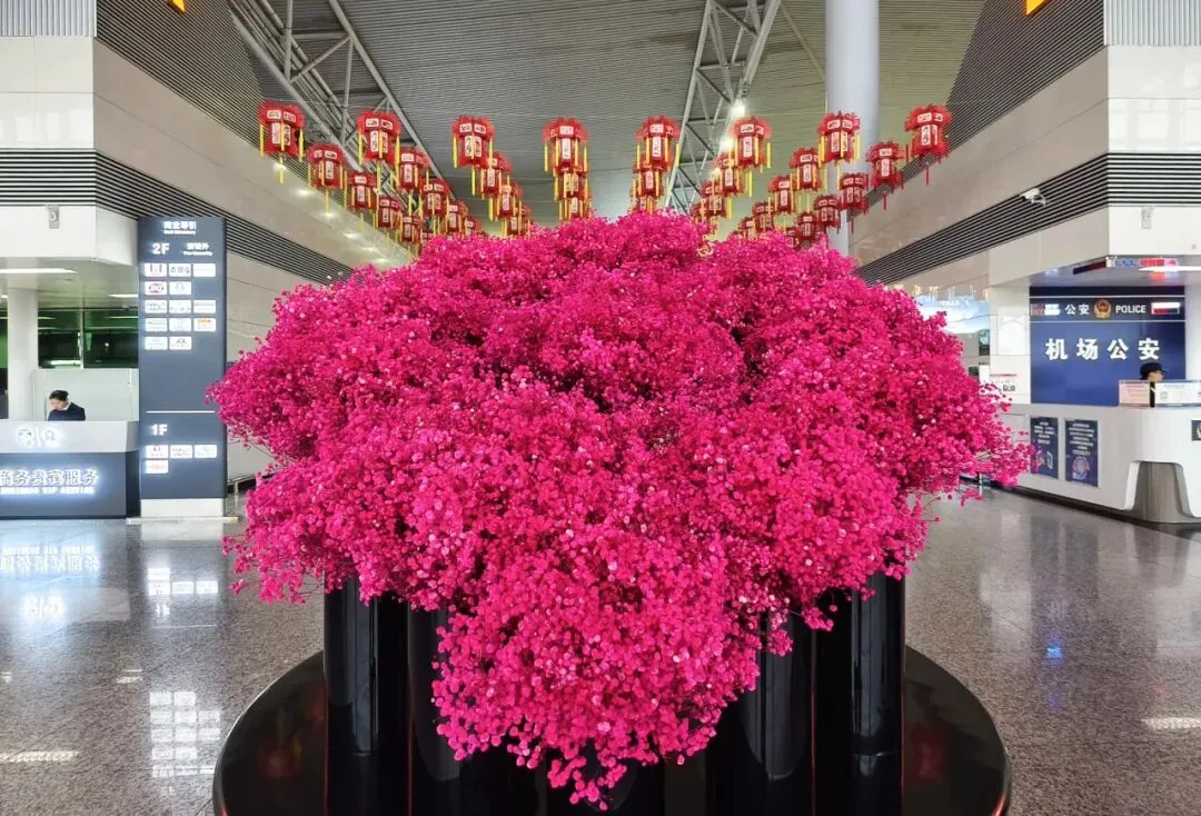 春运期间,机场还将化身充满年味的“新春驿站”。机场巴士内,窗花点缀车窗、中国结悬挂行李架;机场场区高架道路、停车场悬挂“平安回家”“欢迎回家”主题元素景观,1、2号环岛LED屏滚动新春寄语。同时,航站楼也是年味十足,核心动线悬挂 300 余盏灯笼;AB、BC安检通道前“金橘树”“锦绣紫春”景观相映成趣,C值机岛旁“新年许愿”墙成为旅客打卡热点;2、3号门“福马迎新年”主题门头喜气洋洋;值机大厅、候机区、到达夹层的4处主灯笼展示区,同步推出马年专属登机牌,让旅客在便捷出行的同时,邂逅新春惊喜。