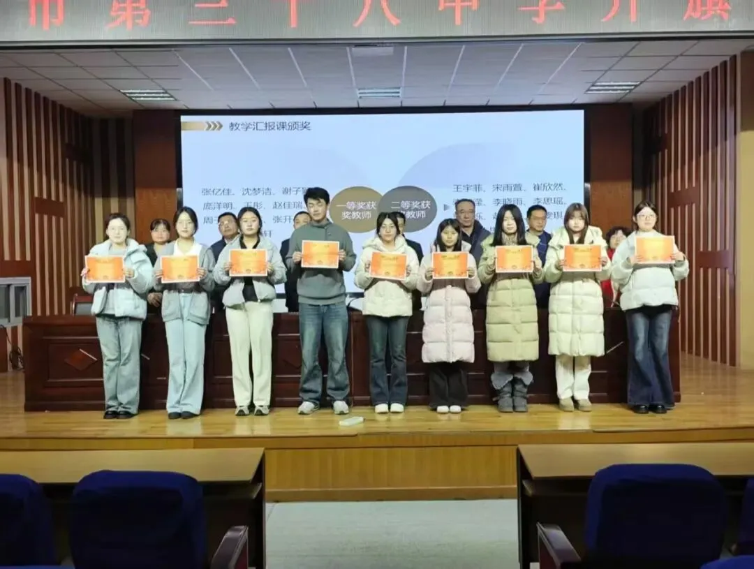 最后,指导教师代表刘亚楠老师上台寄语。她首先肯定了实习老师们“不怕苦、不怕累、有担当、肯实干”的精神,称赞大家在一学期的实践中展现出的青春锐气与教育热情。她鼓励大家带着这份韧劲在未来的教育道路上深耕不辍,期待大家早日成为有理想、有温度、有本领的优秀教师,并向这群青年教师发出了“常回三十八中看看”的温暖邀约。