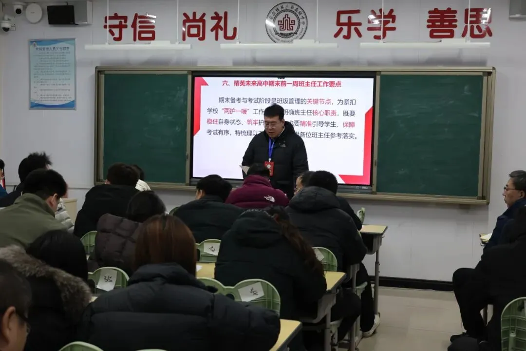 2 月 1 日,我校聚焦高一高二年级期末备考关键节点,召开班主任工作部署会。张彩茹校长、张永才副校长、德育处主任、教学处主任及全体高一高二班主任参会,围绕期末管理核心任务细化部署,为考试周平稳有序推进筑牢保障。