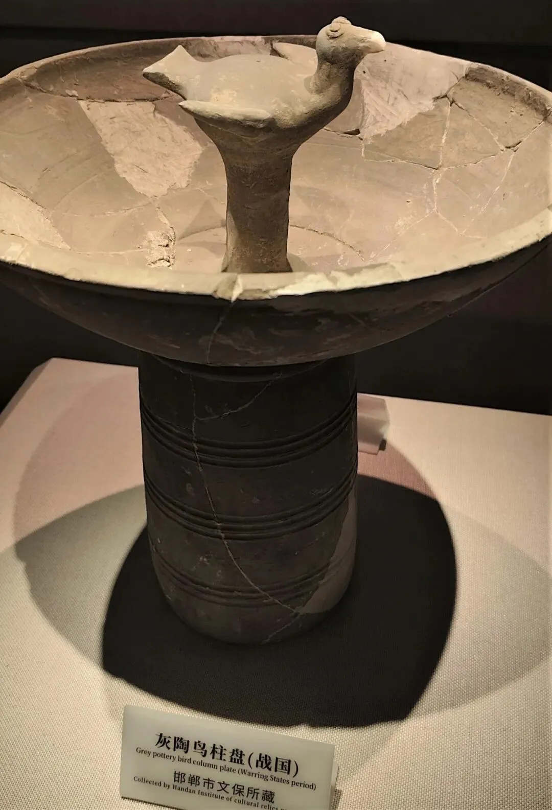 为啥拍这个“国灰陶鸟柱盘”,因为不知道是做啥用的,回来查了一下,估计有以下几种可能性:1豆形灯(鸟嘴衔芯或鸟身搭芯、盘下盛油)、2香薰器(中间香柱、浅盘承灰)、3祭祀或礼仪用器(引魂鸟、太阳鸟)。个人感觉也可能是战国贵族用的水果盘。