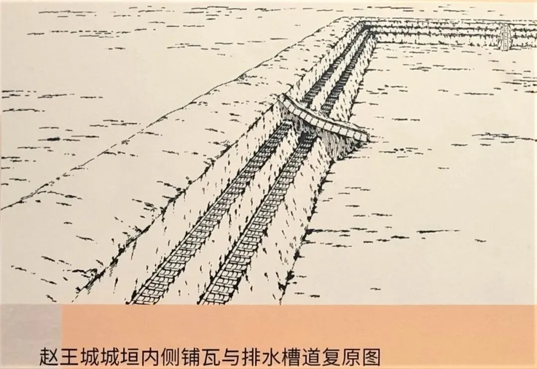 排水设施:城垣内侧配备防雨铺瓦和陶制排水槽道,形成多层落差泄水系统,是东周城市城垣防雨排水的唯一实例。