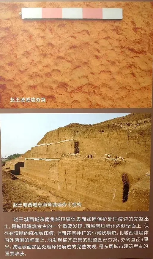 这种夯筑技术更注重“细密”和“层层夯实”,密集的夯窝意味着墙体土质被压缩得密度极高,抗压强度高、防雨侵蚀能力强。加上前面说到的城垣排水系统,也是历经2000多年后,赵王城垣仍能保持3-8米残高的原因所在,是能成为“保存最完好战国古城”的技术基石。
